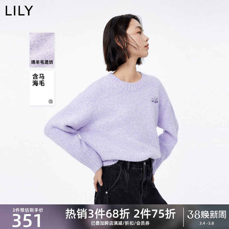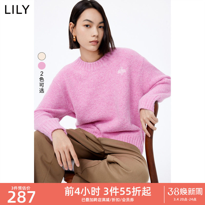 LILY新款女装含马海毛绵羊毛气质通勤绣花宽松毛针织衫上衣