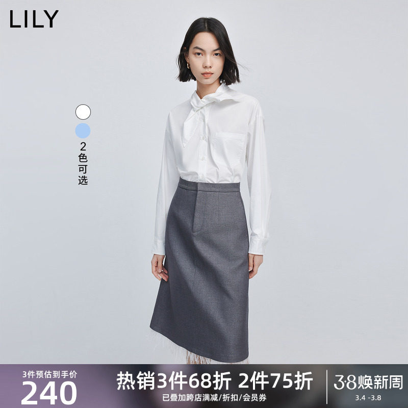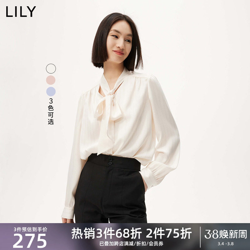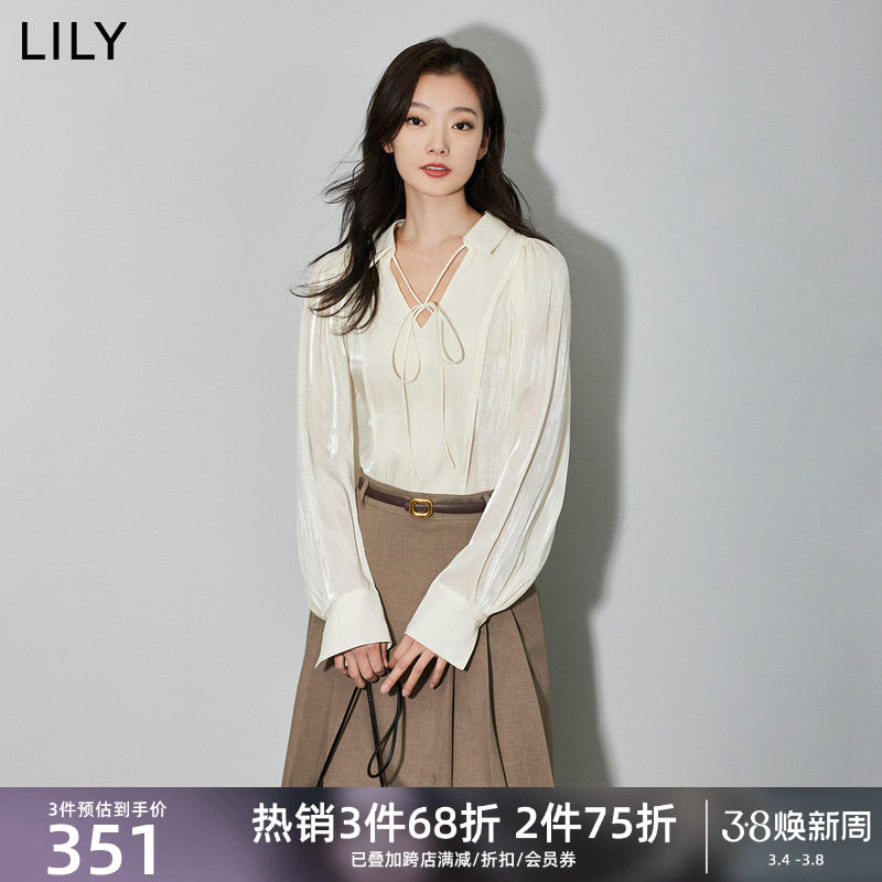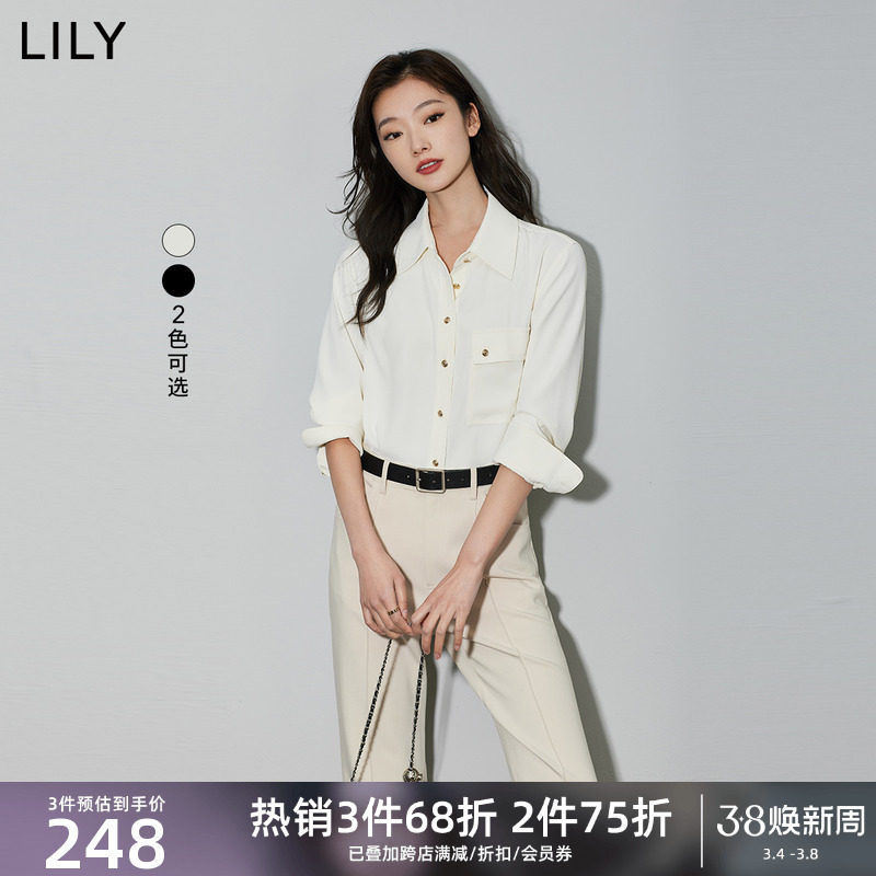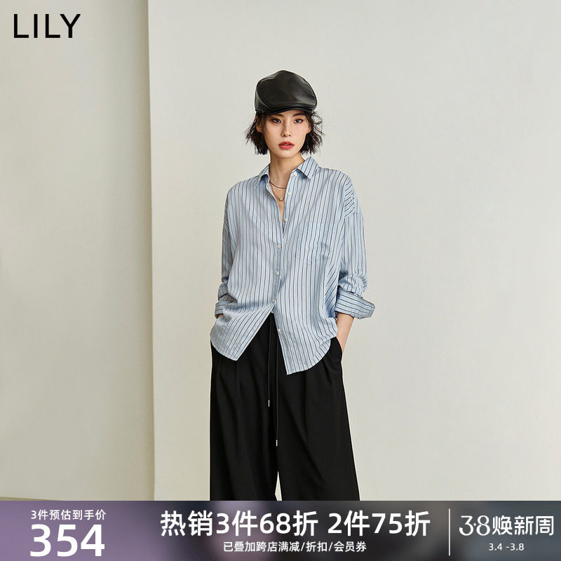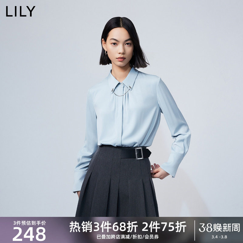 LILY2024春新款女装时尚通勤气质优雅通勤职业宽松垂坠感长袖衬衫