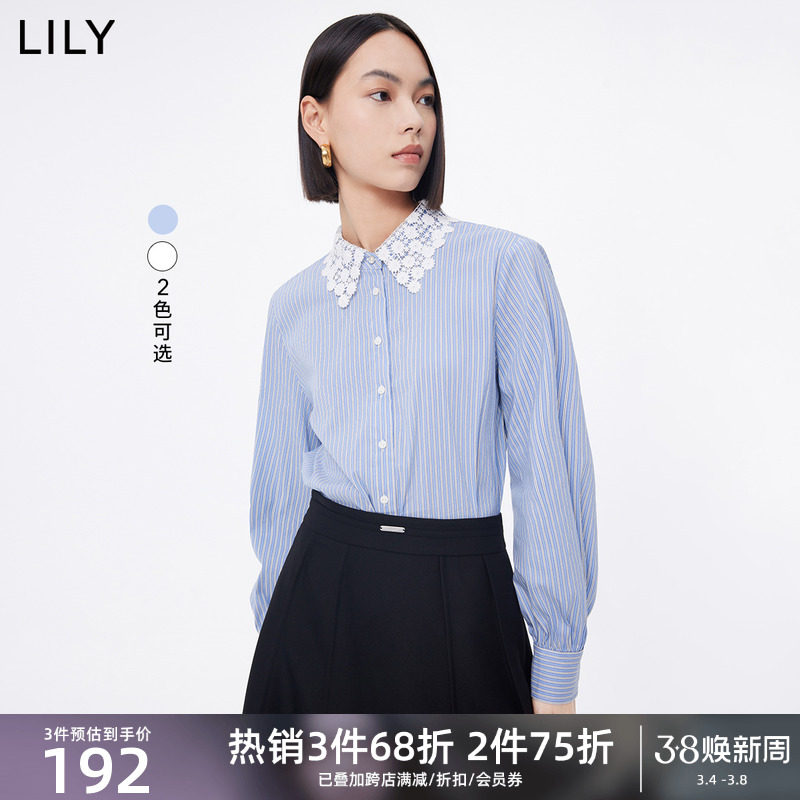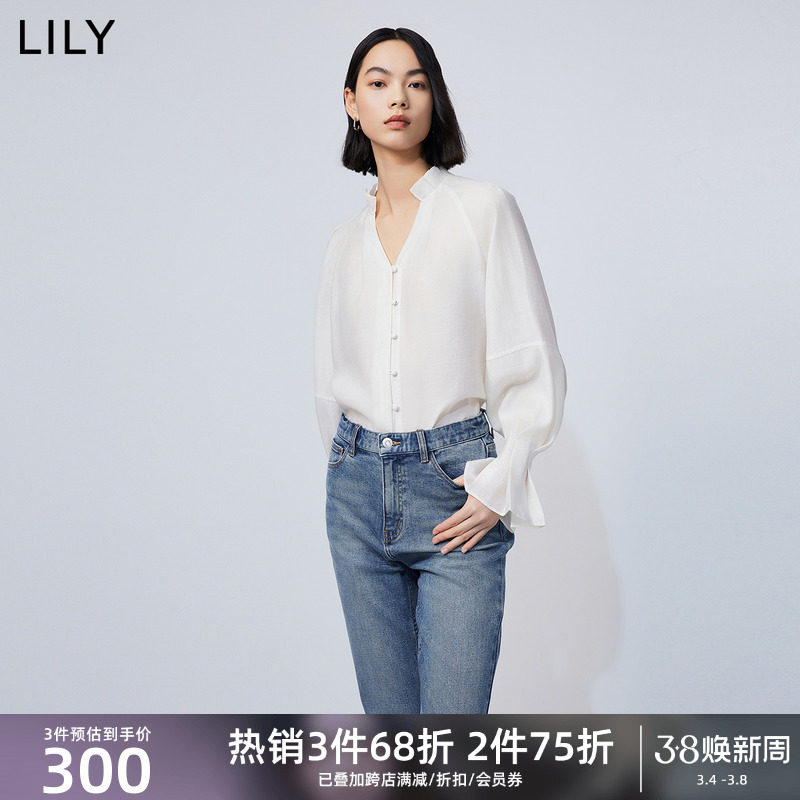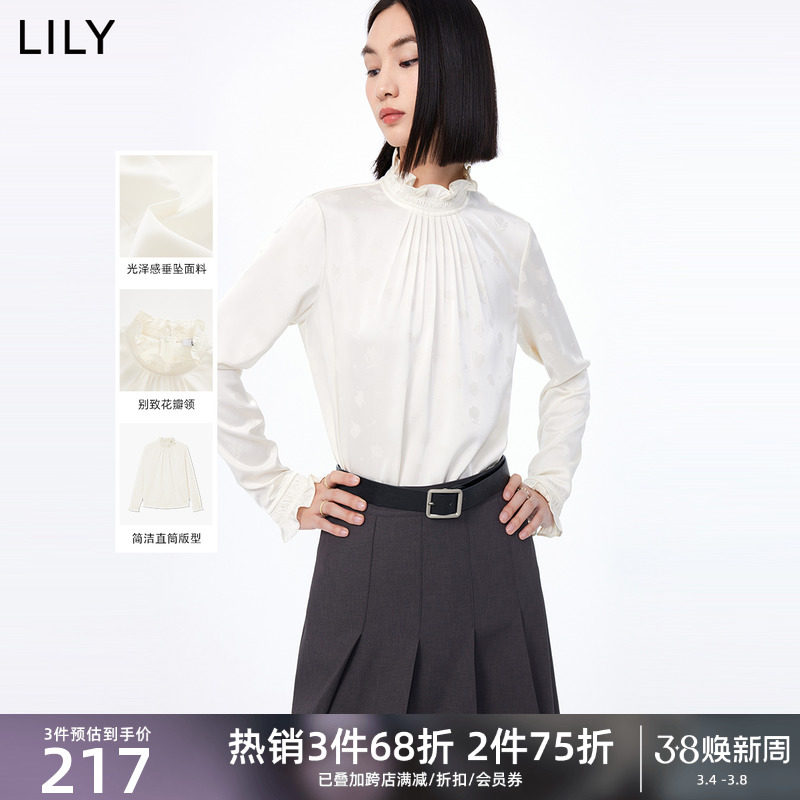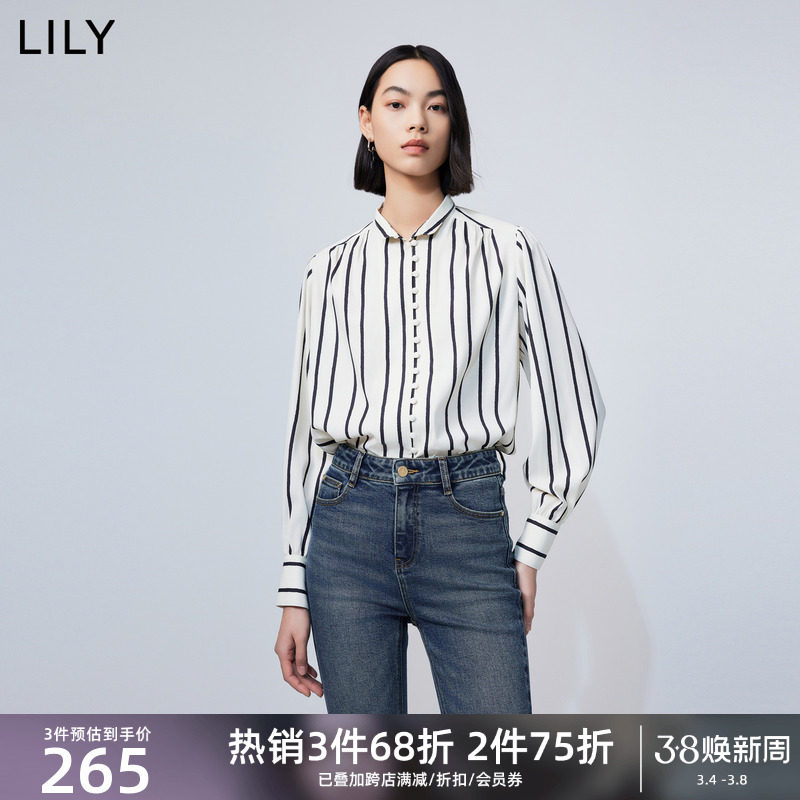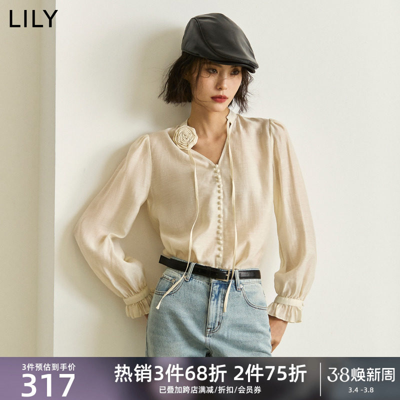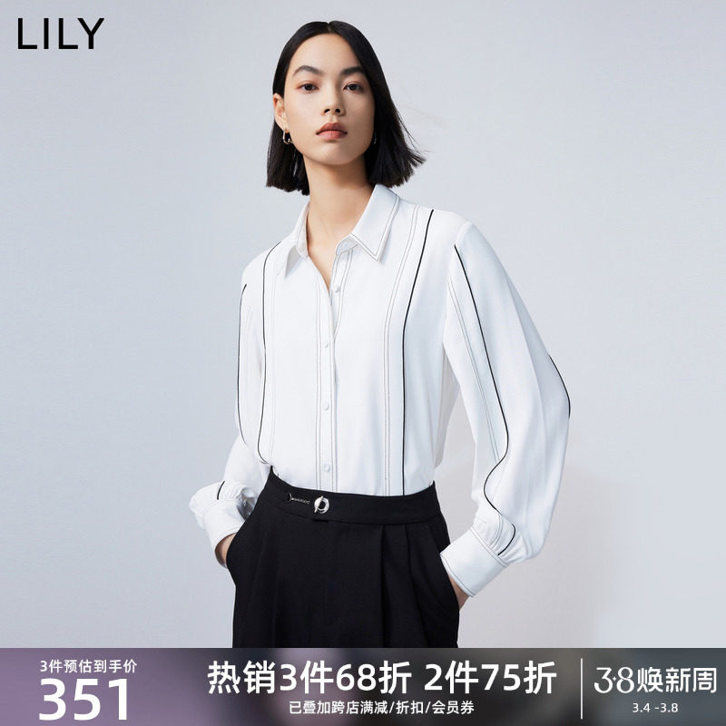 LILY2024春新款女装时尚通勤气质优雅通勤职业宽松垂坠感长袖衬衫