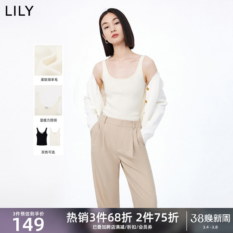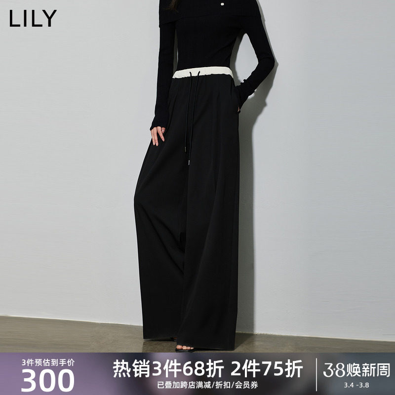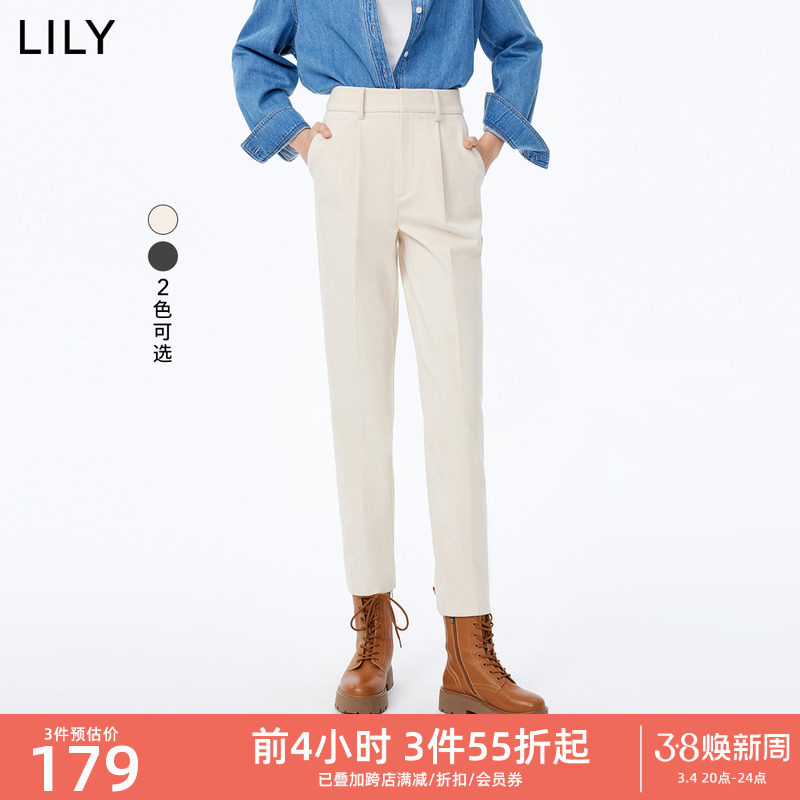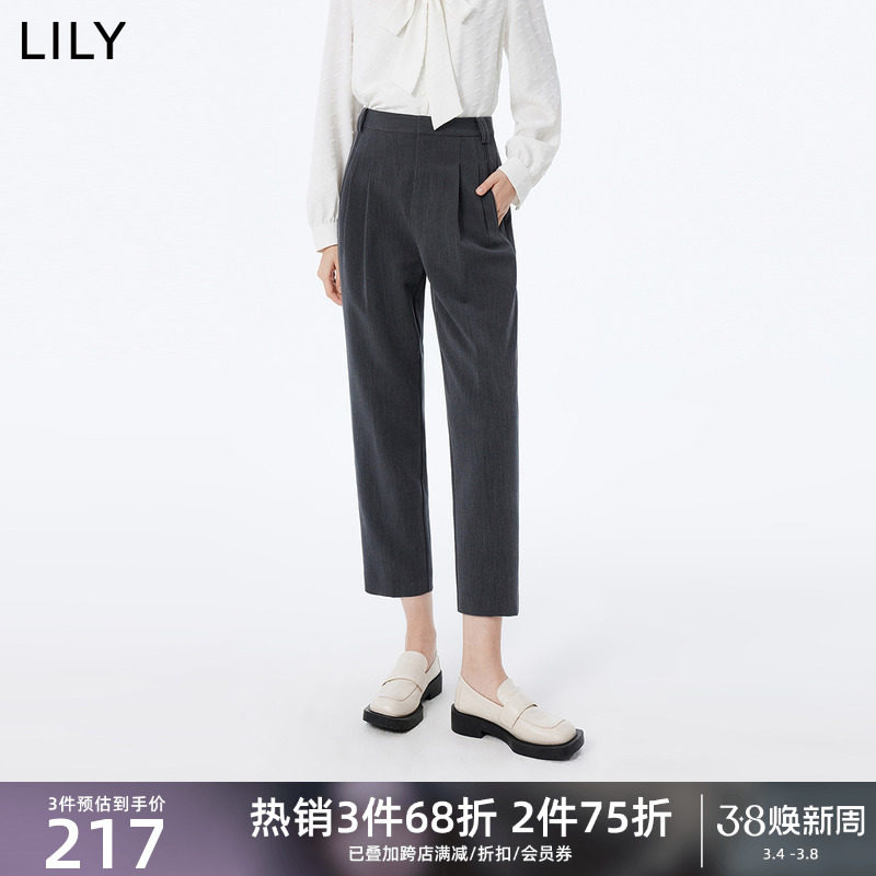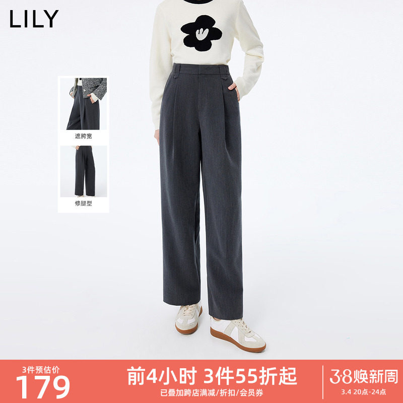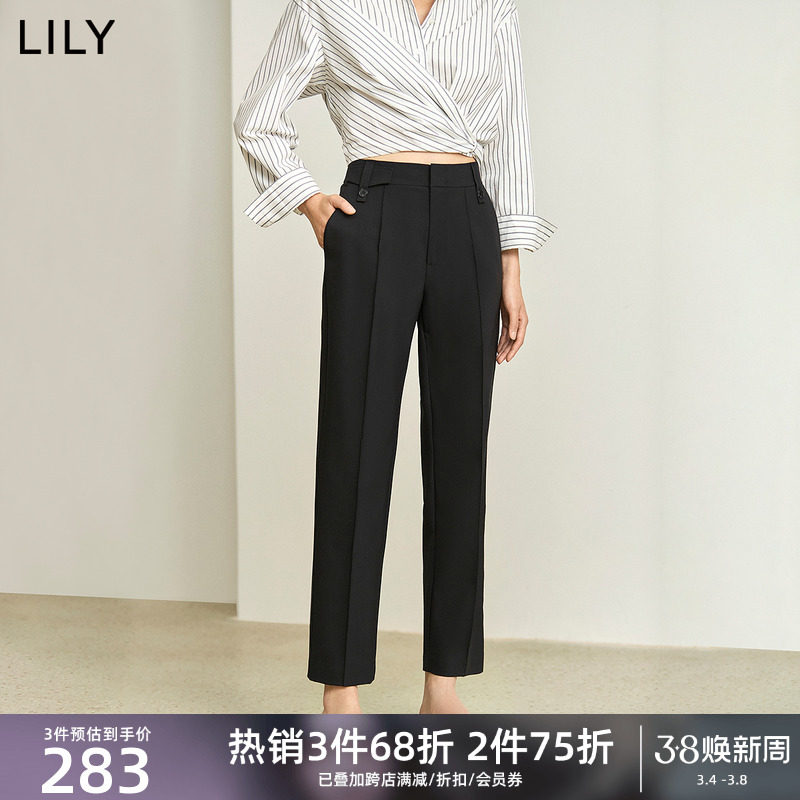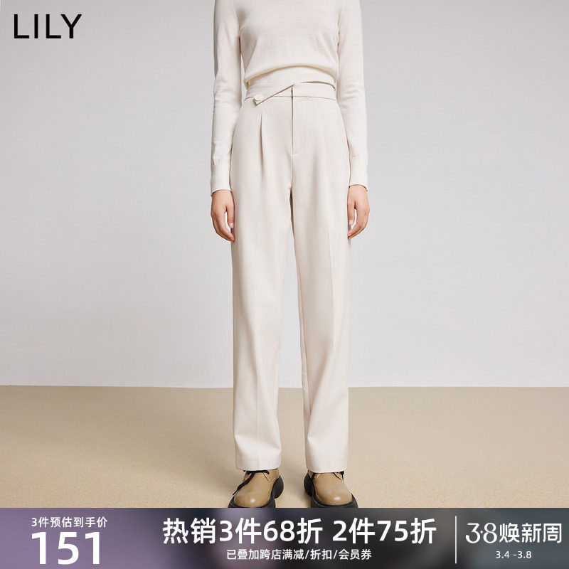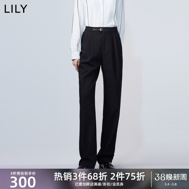 LILY新款女装都市通勤时尚干练垂感高腰显瘦直筒休闲西装裤