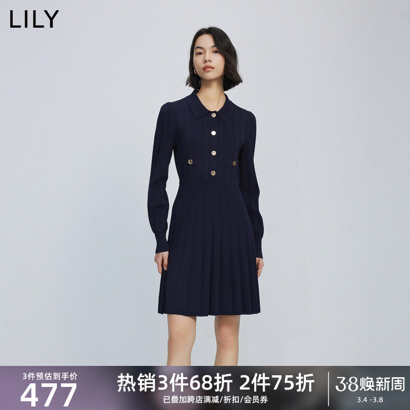 LILY2024春新款女装气质通勤时尚复古中长款针织连衣裙小个子内搭