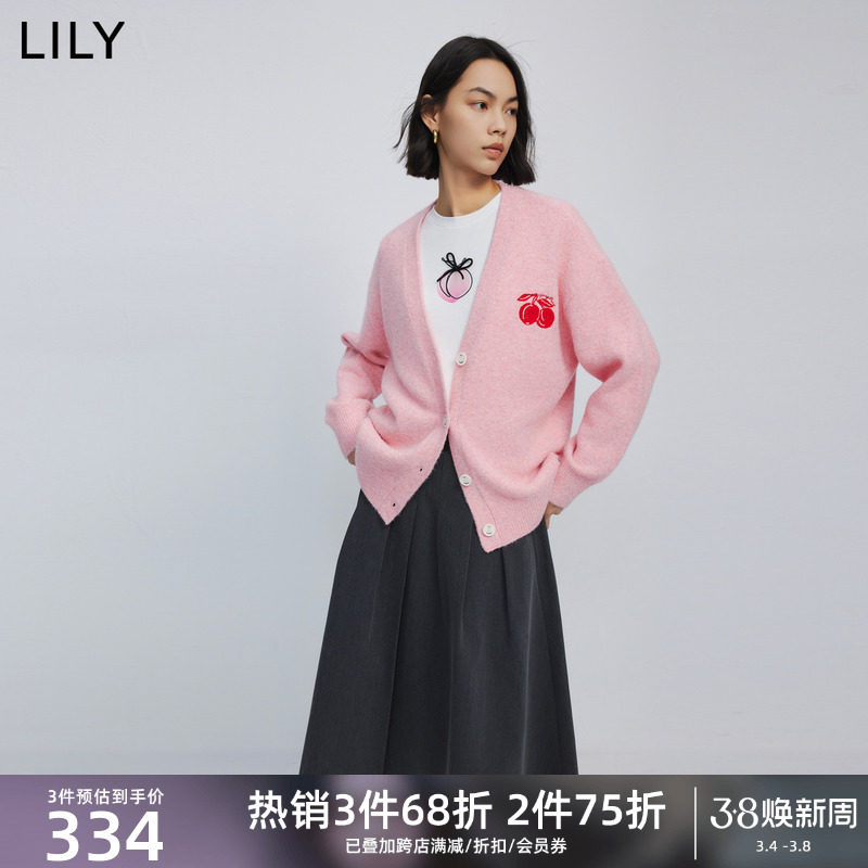 LILY2024春新款女装含绵羊毛多巴胺穿搭趣味樱桃气质通勤针织开衫