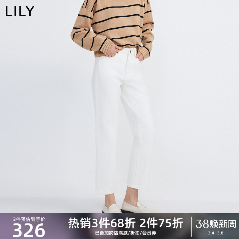 LILY2024春新款女装休闲通勤百搭显瘦直筒高腰九分裤白色牛仔裤女