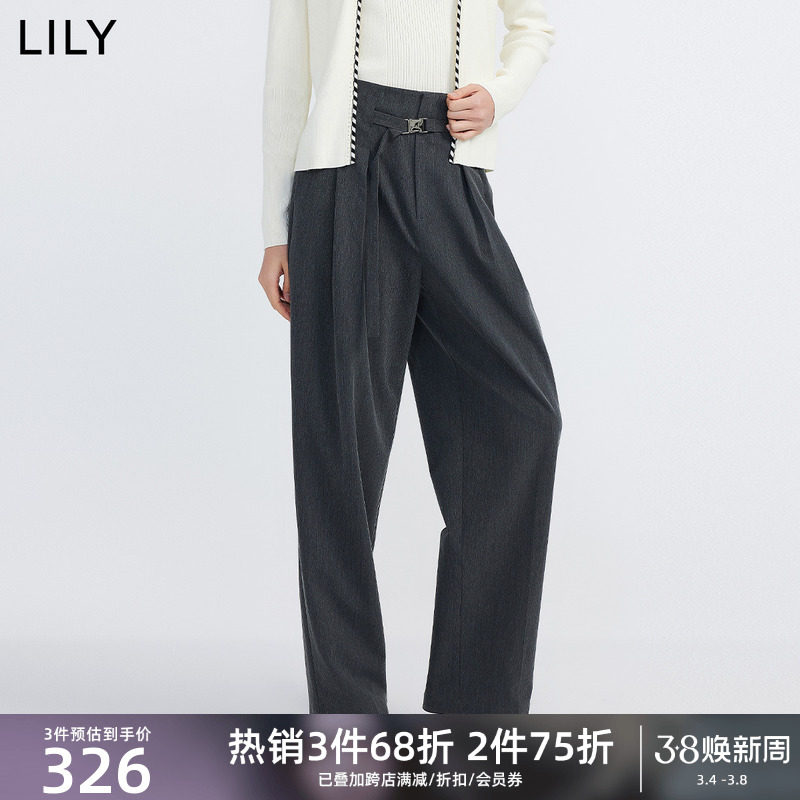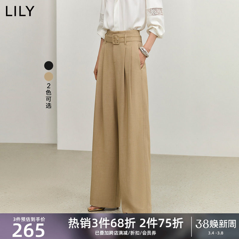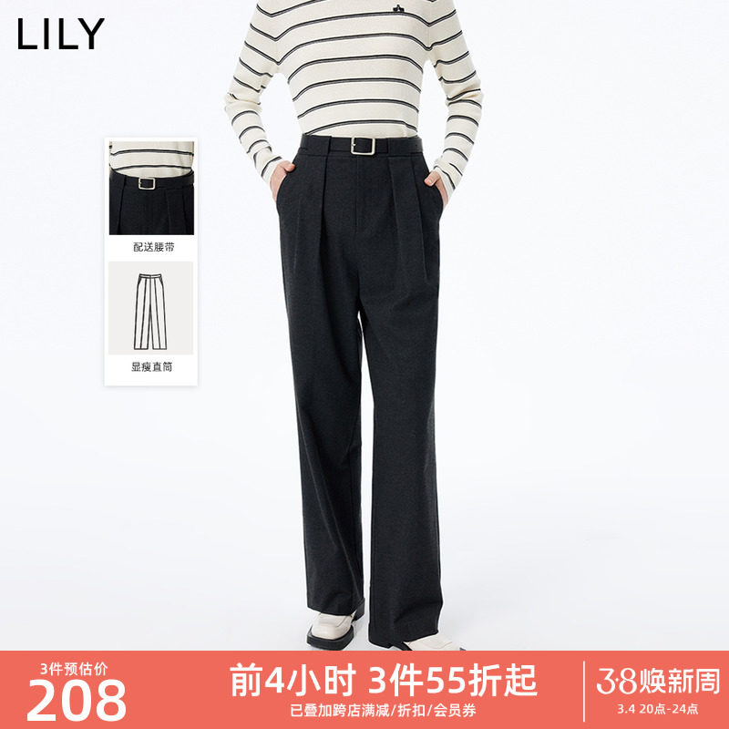 LILY2024春新款女装都市时尚通勤款显瘦高腰垂坠感腰带西装休闲裤