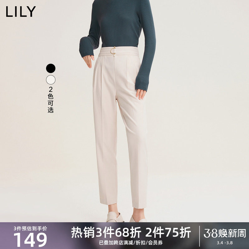 LILY新款女装气质时尚通勤设计感显瘦高腰小脚西装裤休闲裤