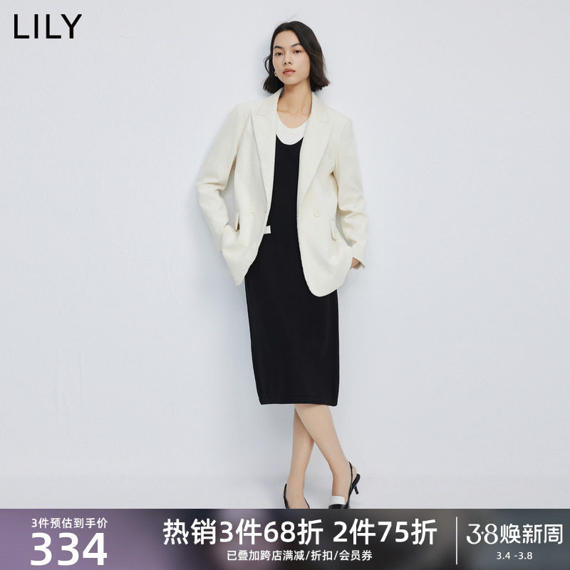 LILY2024春新款女装复古优雅小香风含绵羊毛通勤叠穿针织开衫外套