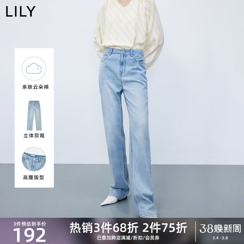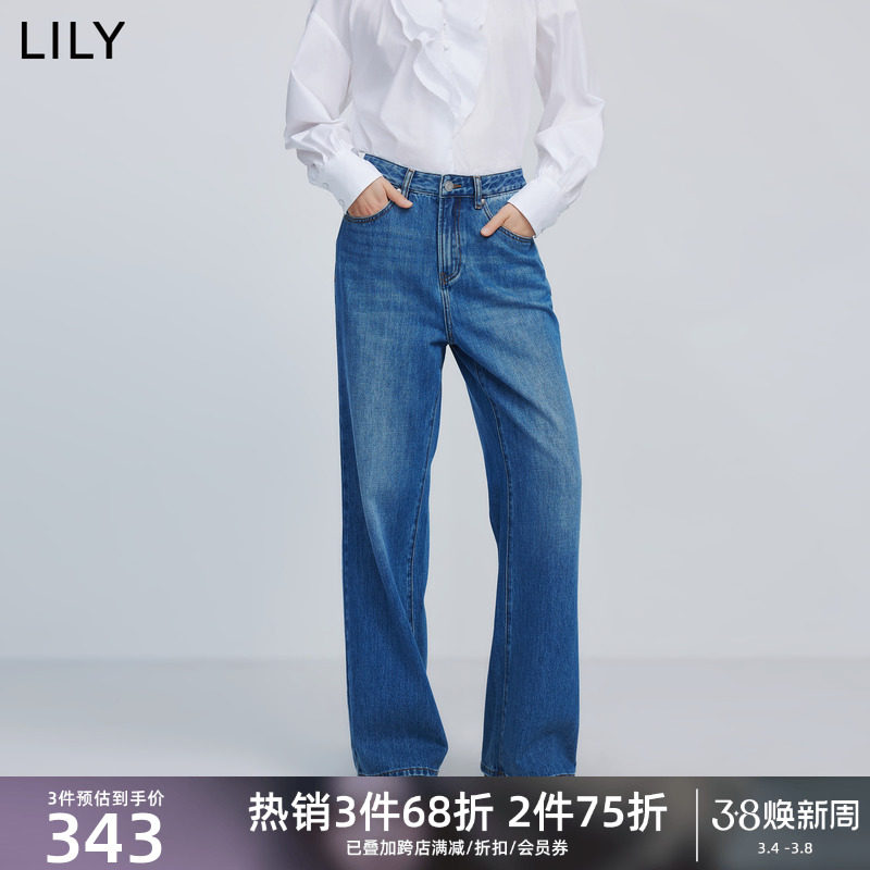 LILY2024春新款女装时尚通勤垂坠感复古休闲显瘦直筒阔腿牛仔裤女