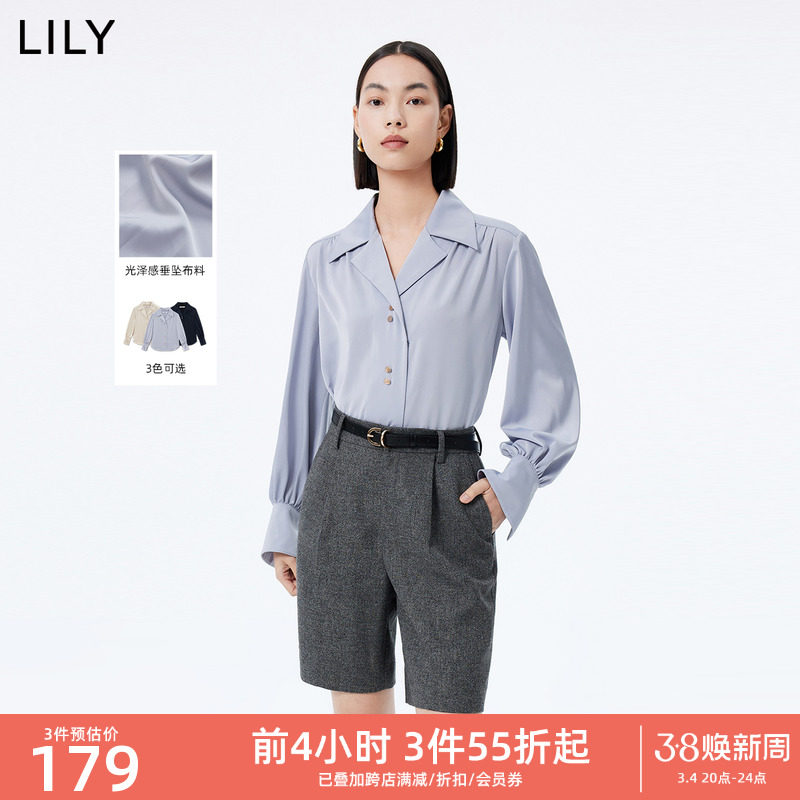 LILY新款女装优雅气质西装领宽松垂坠感都市通勤时尚衬衫上衣女