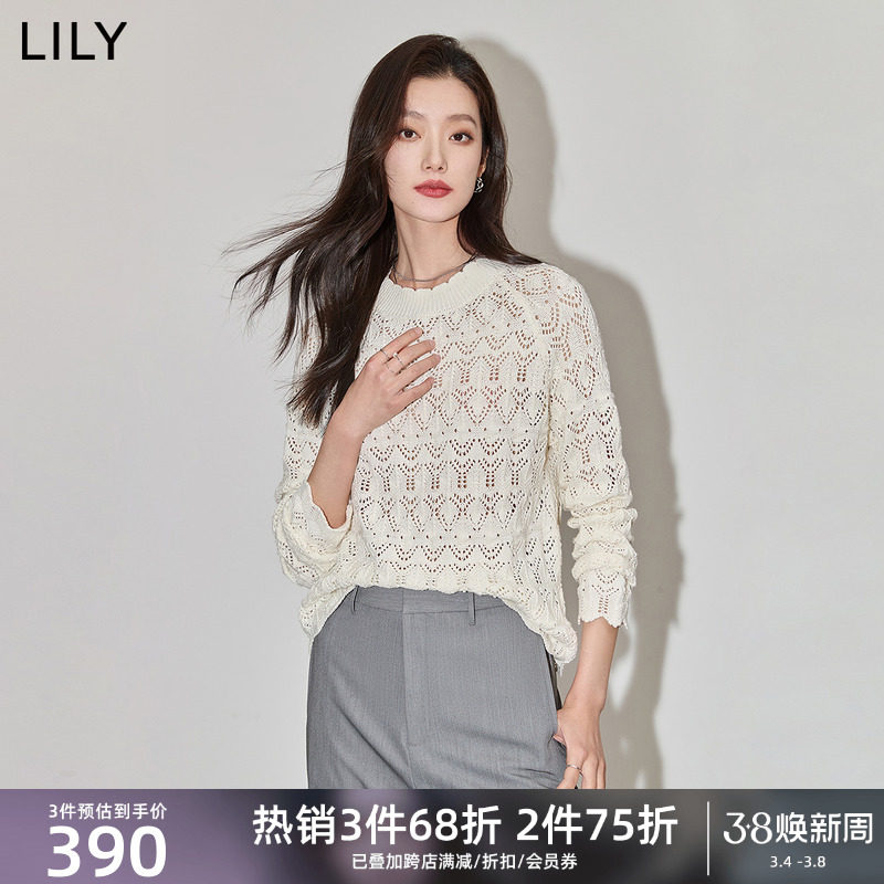 LILY2024春新款女装温柔气质镂空通勤款毛针织衫上衣宽松时尚叠穿