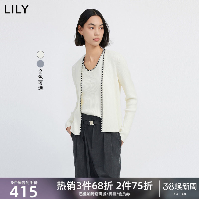 LILY2024春新款女装复古时尚两件套优雅别致无门襟针织开衫上衣女