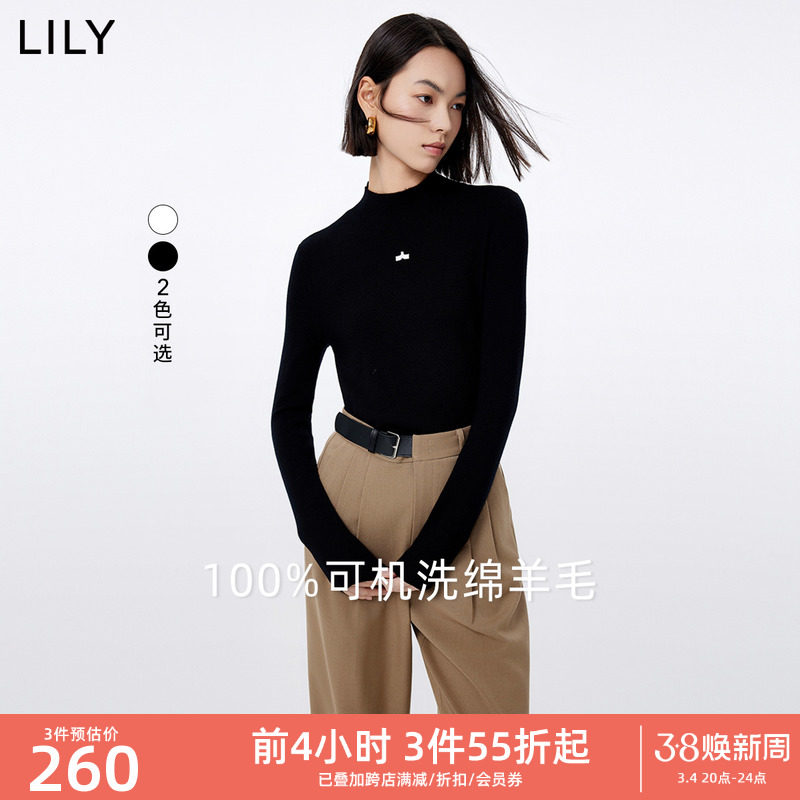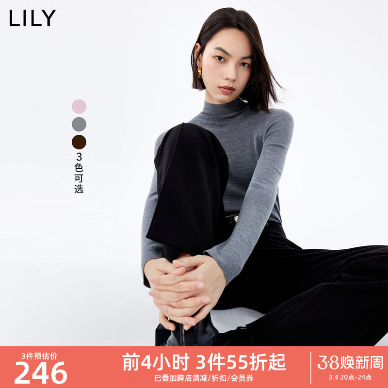 LILY新款女装可机洗绵羊毛通勤款半高领修身毛针织衫打底衫