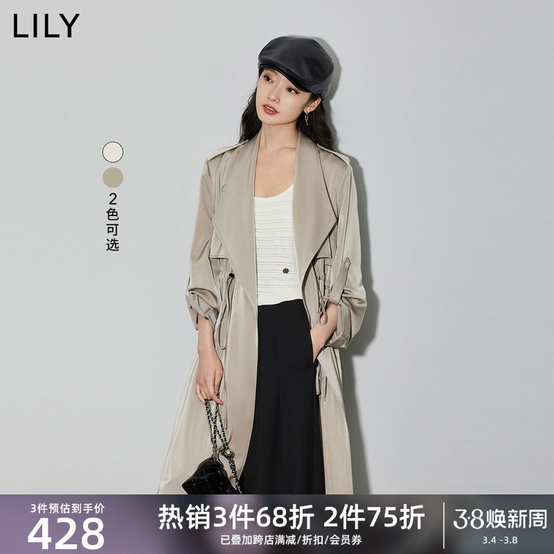 LILY2024春新款女装休闲都市英伦风时尚抽绳两穿长袖长款风衣外套