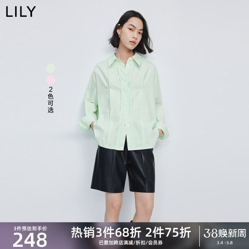 LILY2024春新款女装多巴胺穿搭别致压褶都市通勤休闲宽松垂感衬衫