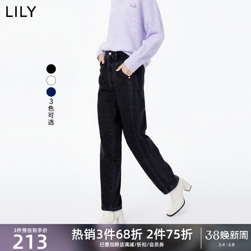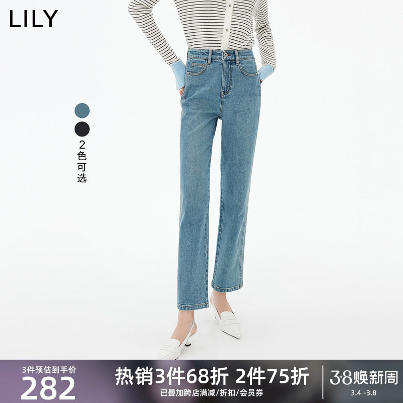LILY新款女装时尚通勤款休闲显瘦小直筒老钱风九分牛仔裤女