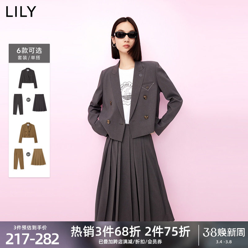 LILY女装美式复古职场减龄短款小西装外套西装裤百褶裙宽松套装