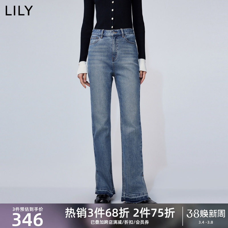 LILY2024春新款女装休闲通勤别致洋气毛边开叉显瘦小直筒牛仔裤女