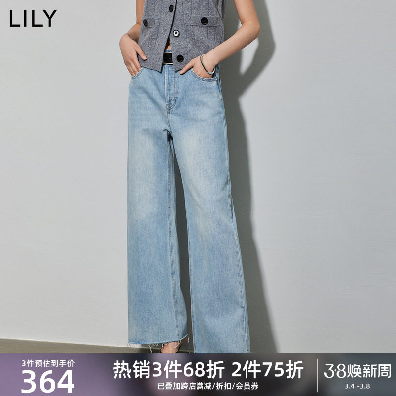 LILY2024春新款女装休闲通勤款百搭时尚毛边显瘦直筒阔腿牛仔裤女