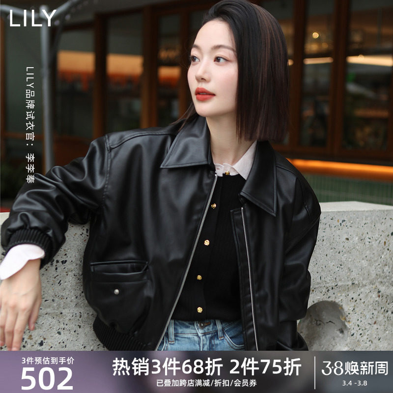 LILY女装时尚都市通勤帅气宽松机车工装PU短外套小个子