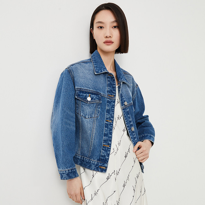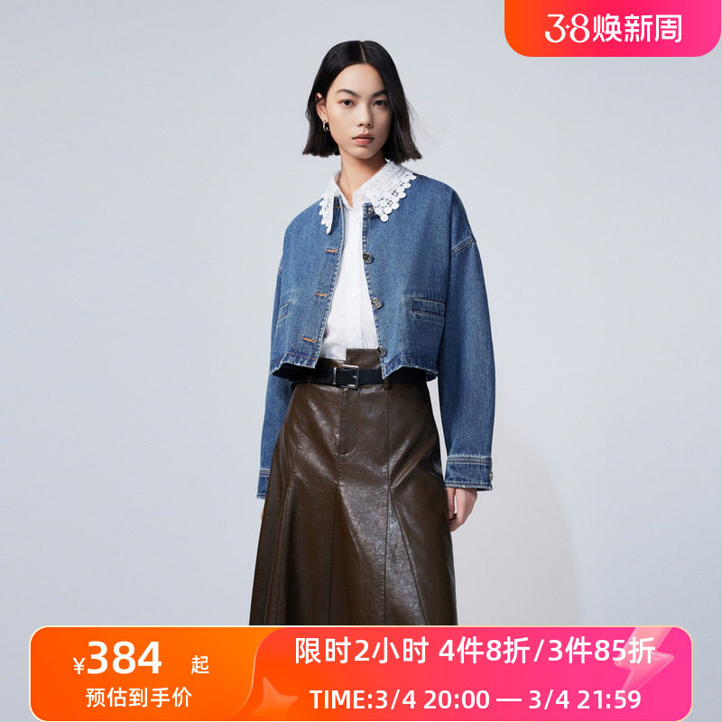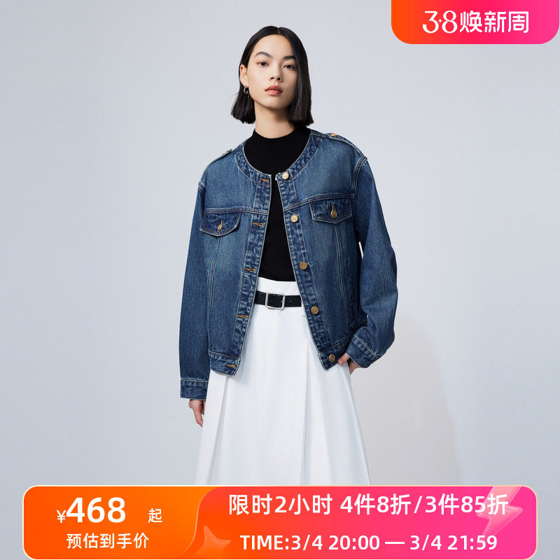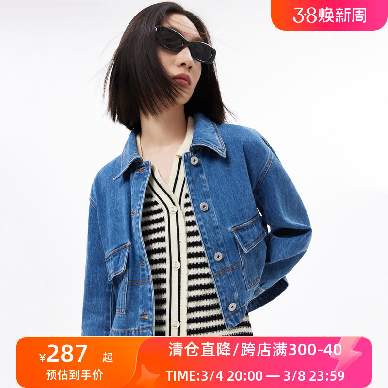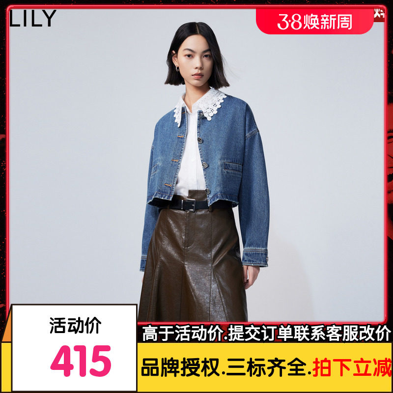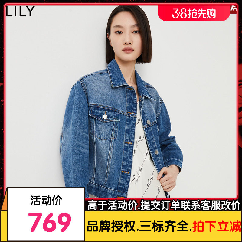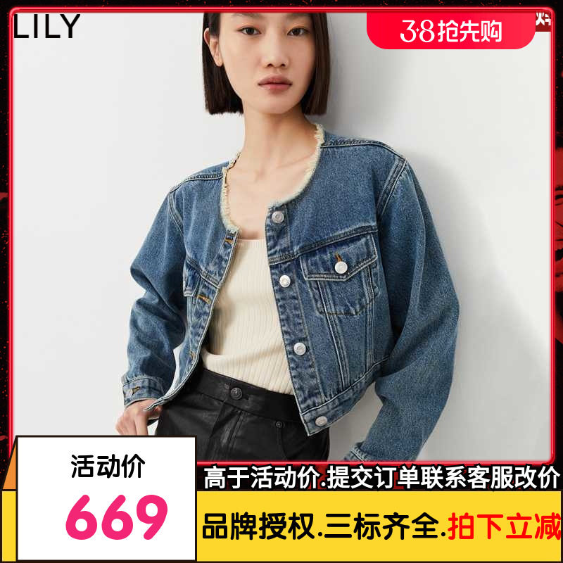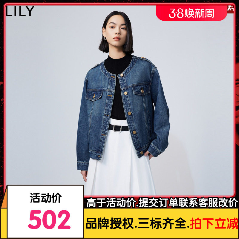 【商场同款】LILY2024春新款女装全棉牛仔复古休闲通勤款短外套女