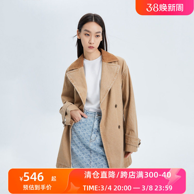 【商场同款】LILY2023春新款女装复古时尚通勤牛仔风衣外套小个子