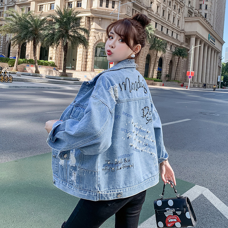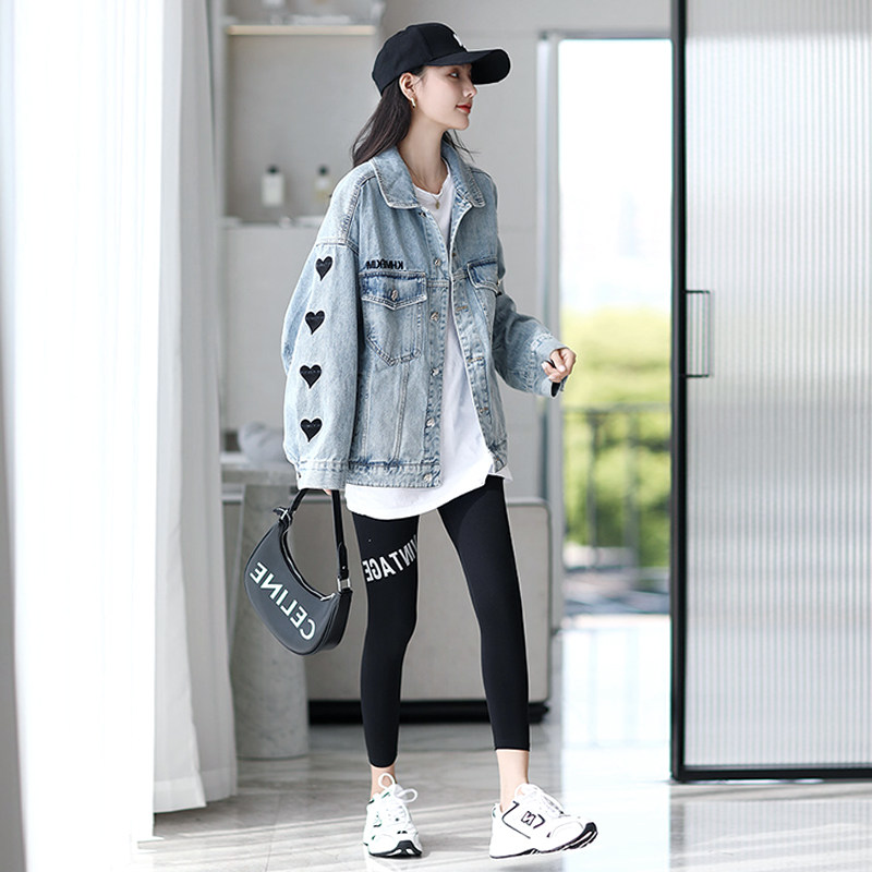 LILY MOST2023年爱心刺绣牛仔外套女装宽松初早春秋复古港风休闲