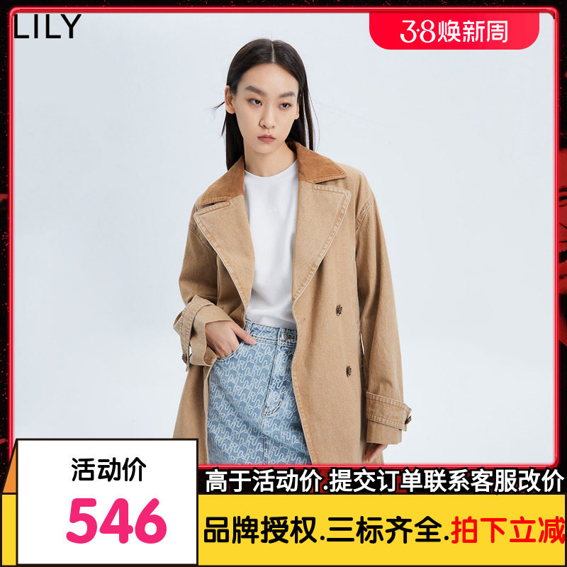 【商场同款】LILY春新款女装复古时尚通勤牛仔风衣外套小个子