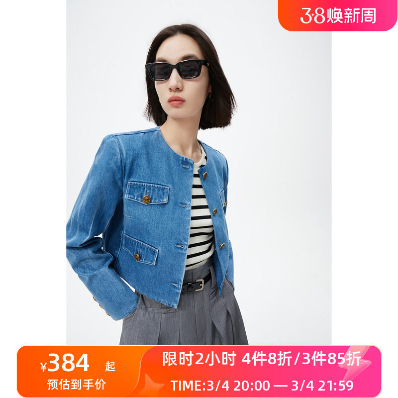 【商场同款】LILY2024春新款女装复古小香风通勤款时尚牛仔短外套