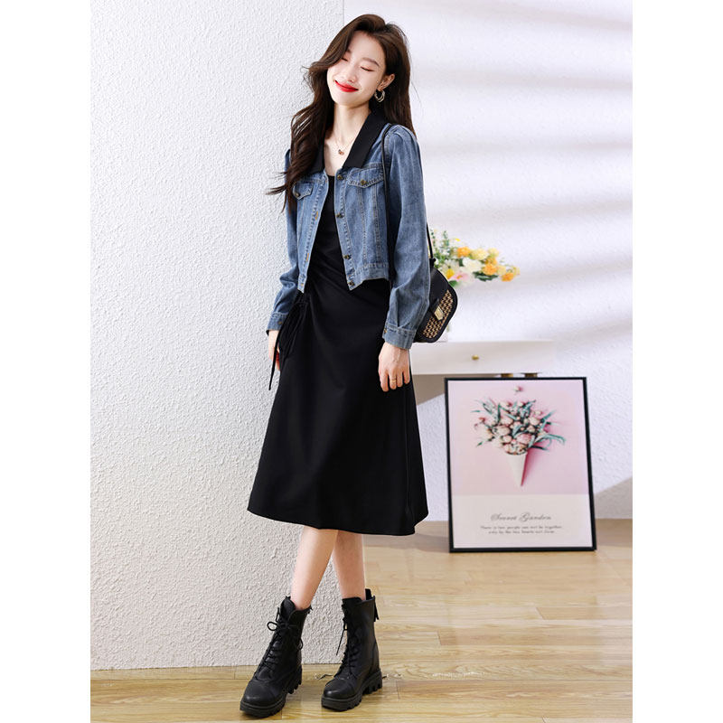 LILY Most时尚套装女春秋高级感气质显瘦牛仔外套吊带裙两件套潮