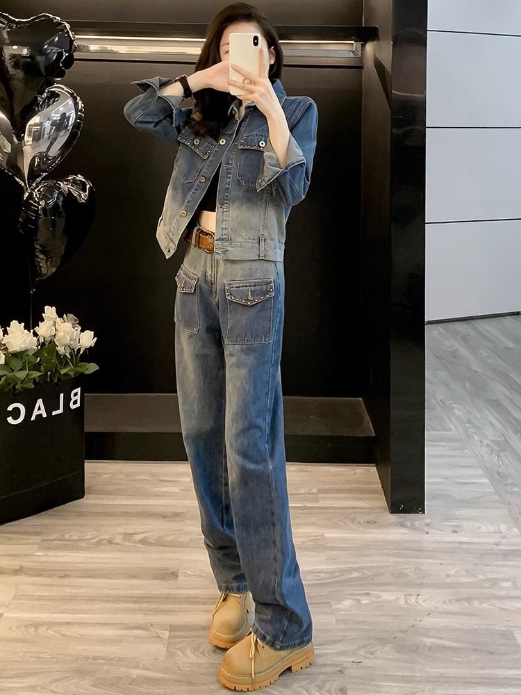 LILY MOST休闲套装女2023春季新款显瘦高级感减龄牛仔外套阔腿裤