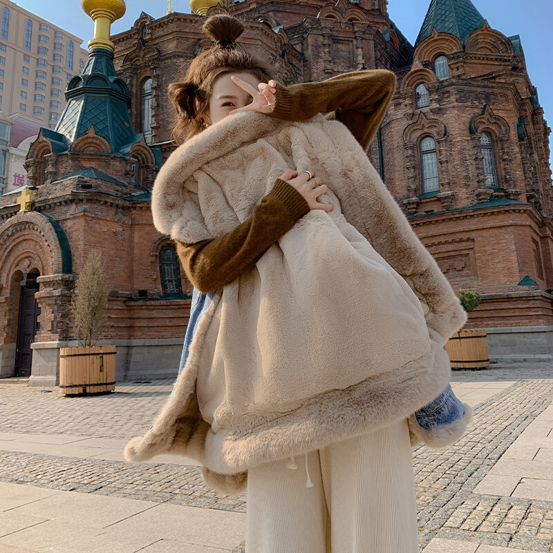 LILY MOST皮毛一体加绒加厚羊羔毛牛仔短外套女派克服棉服
