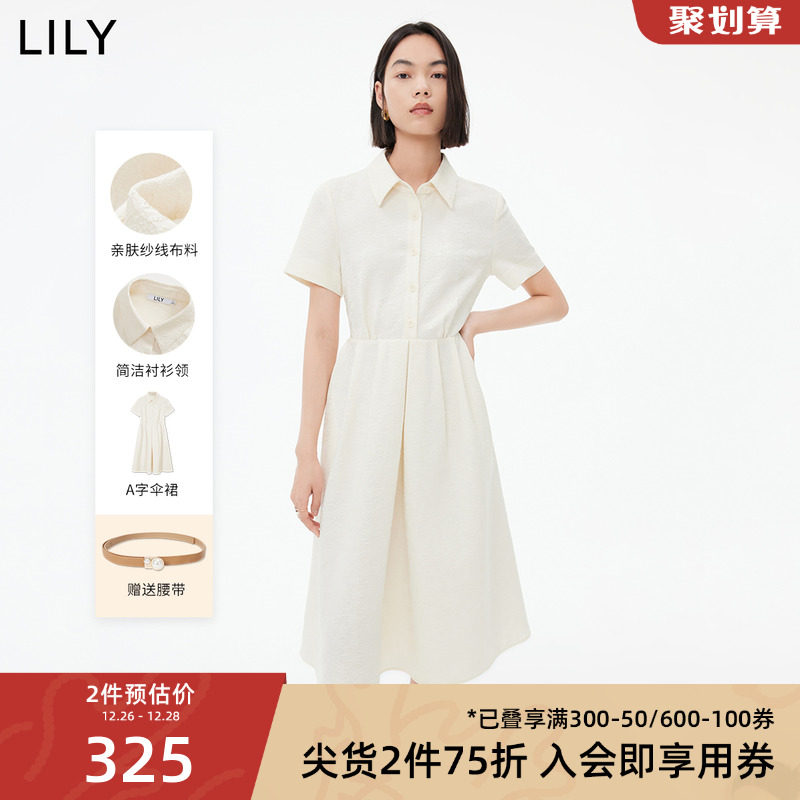 LILY2023秋新款女装气质通勤款别致洋气减龄复古衬衫连衣裙小白裙