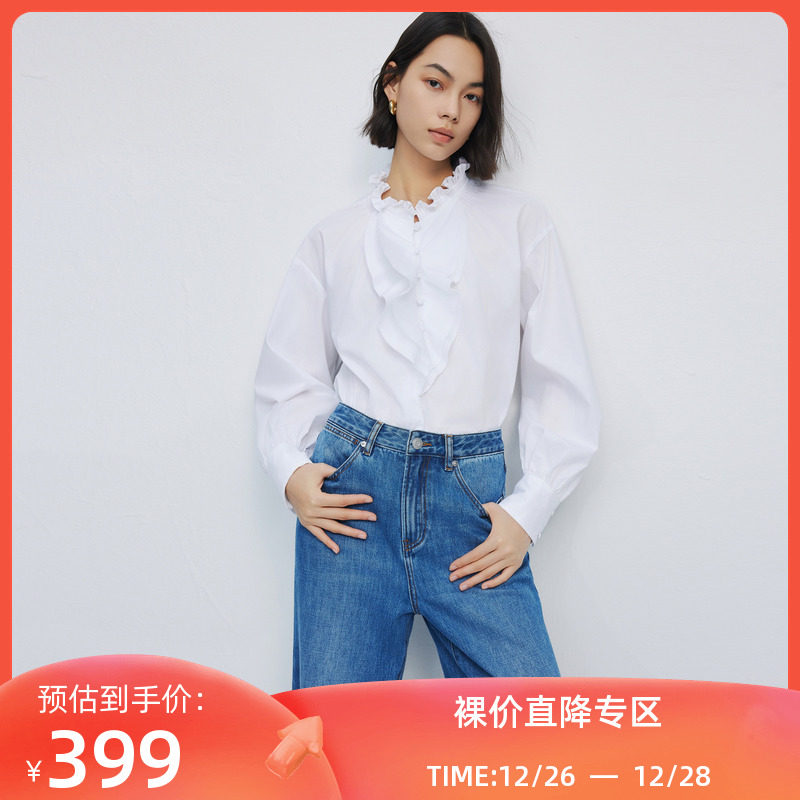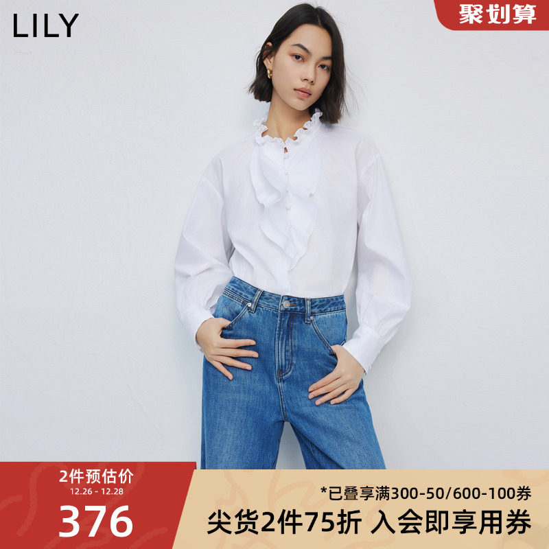 【商场同款】LILY2023新款女装温柔荷叶花边时尚宽松长袖白衬衫