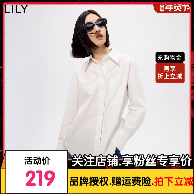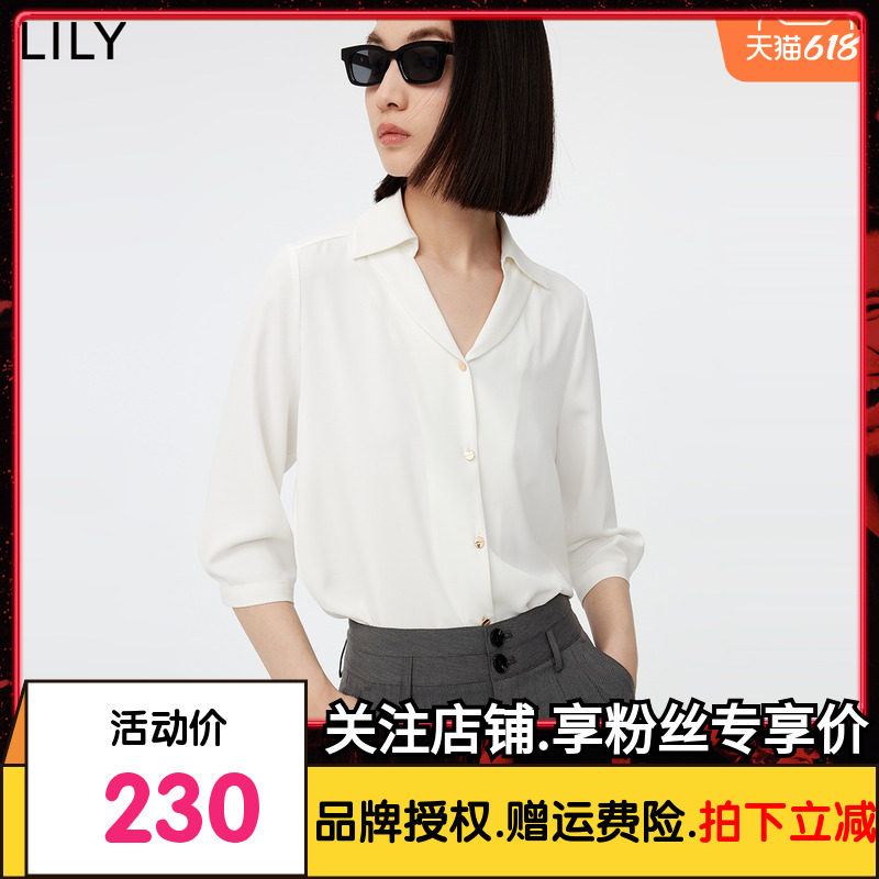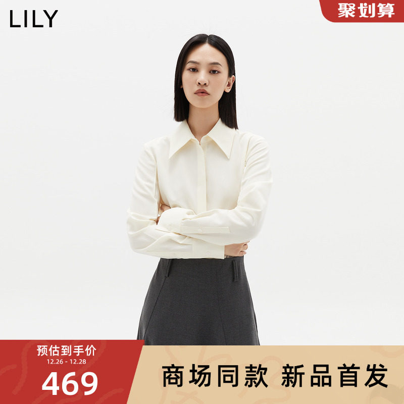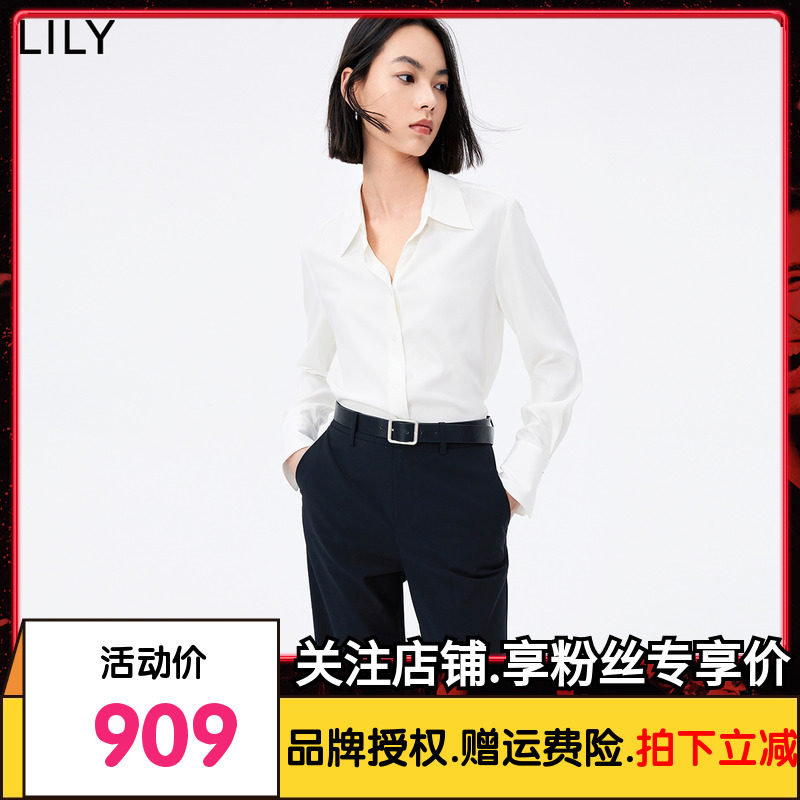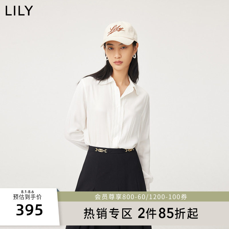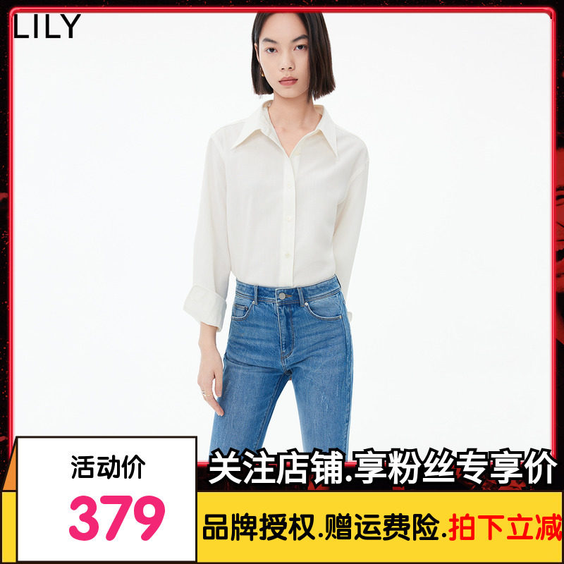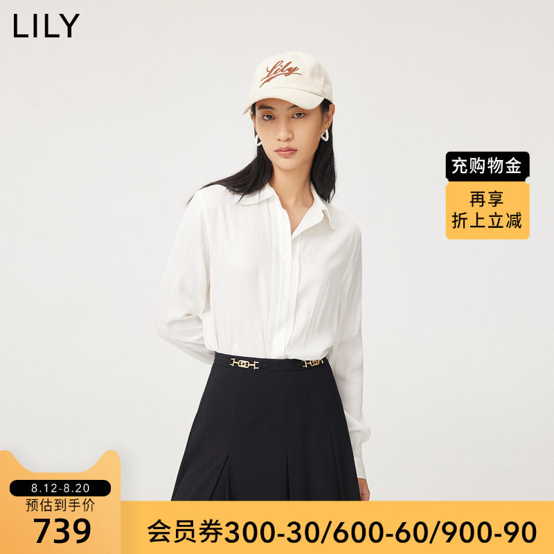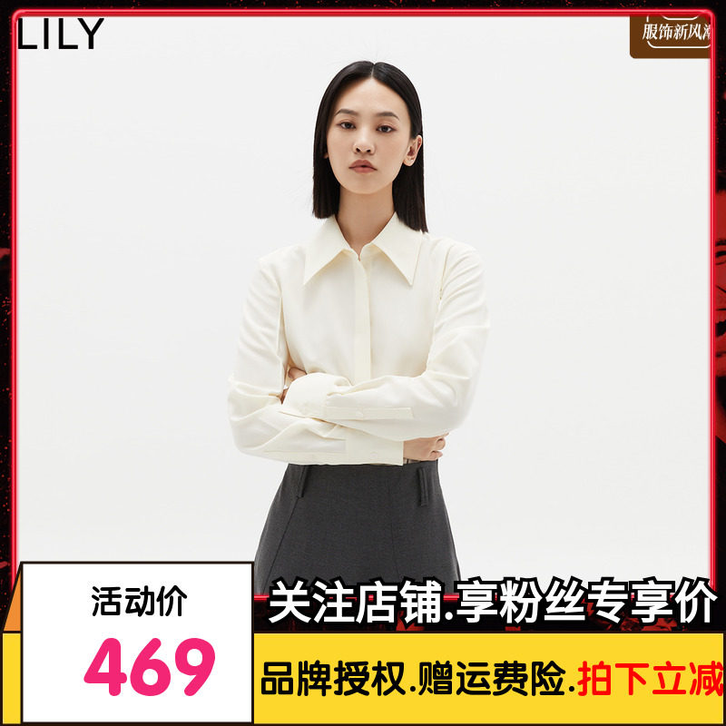 【商场同款】LILY2023秋新款女装含桑蚕丝通勤款宽松垂坠感白衬衫