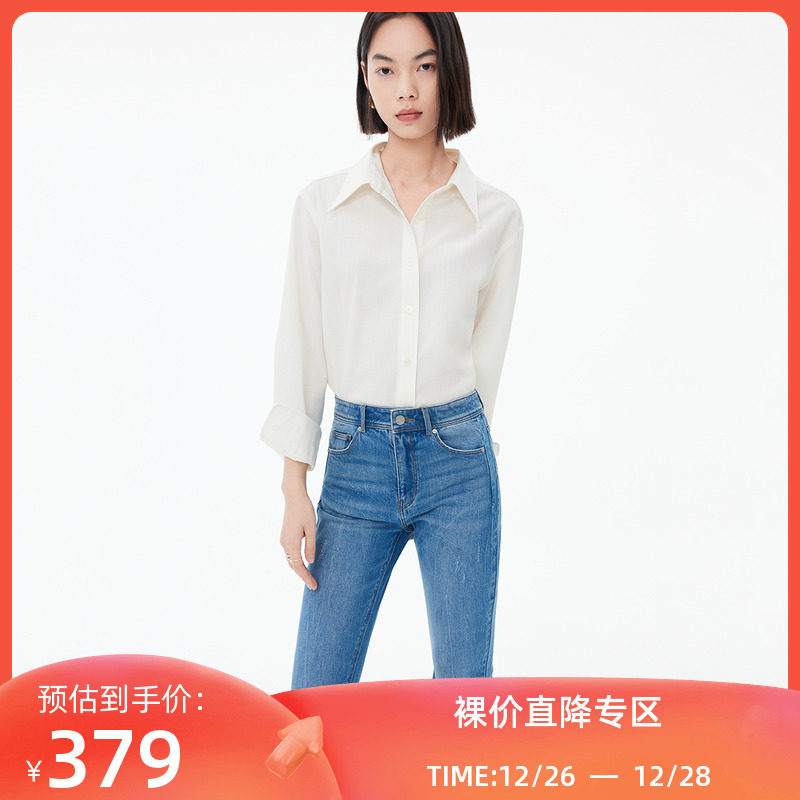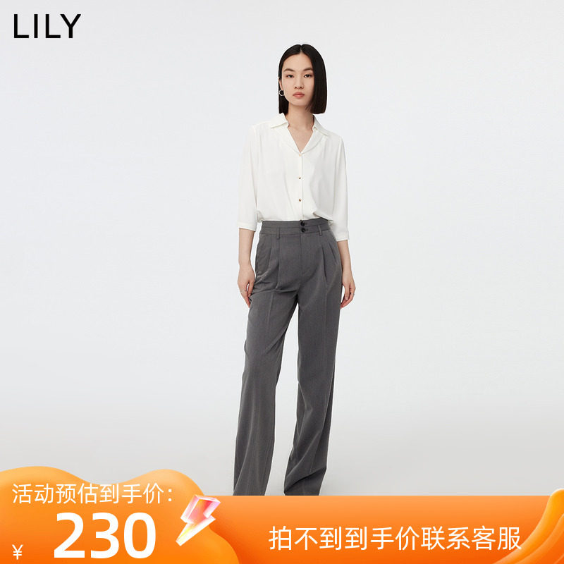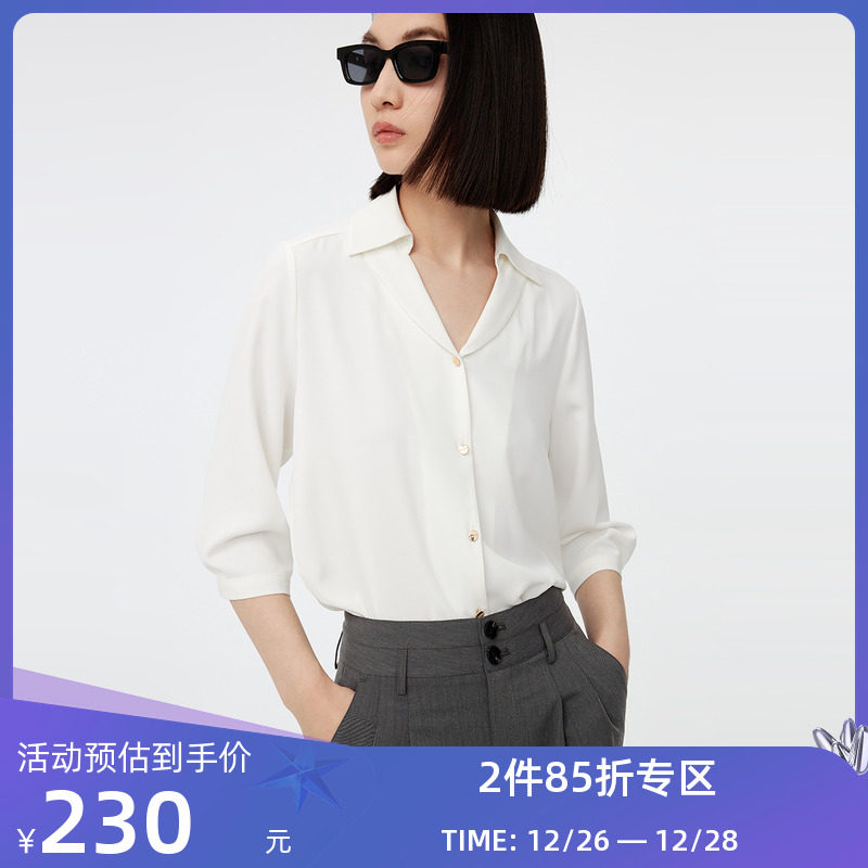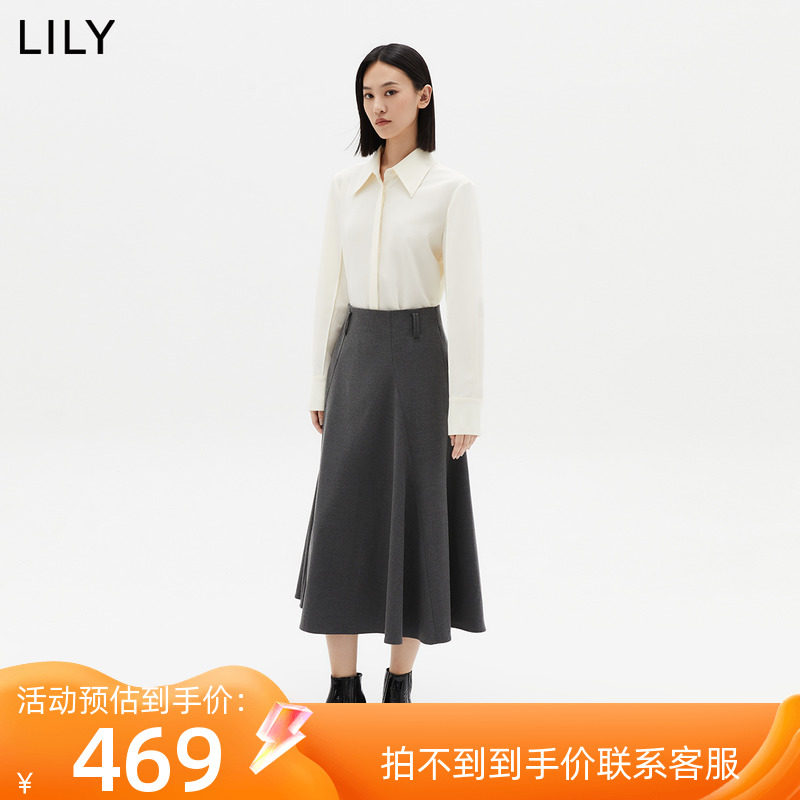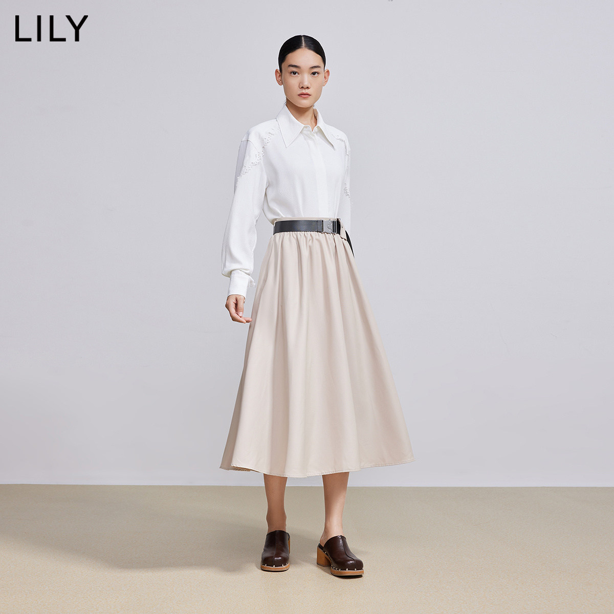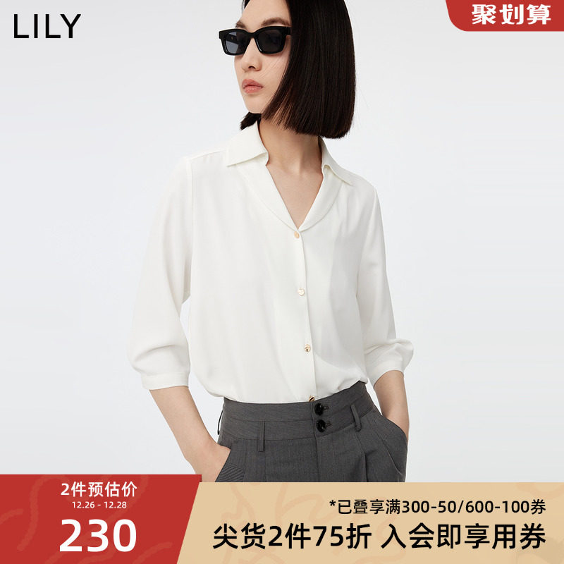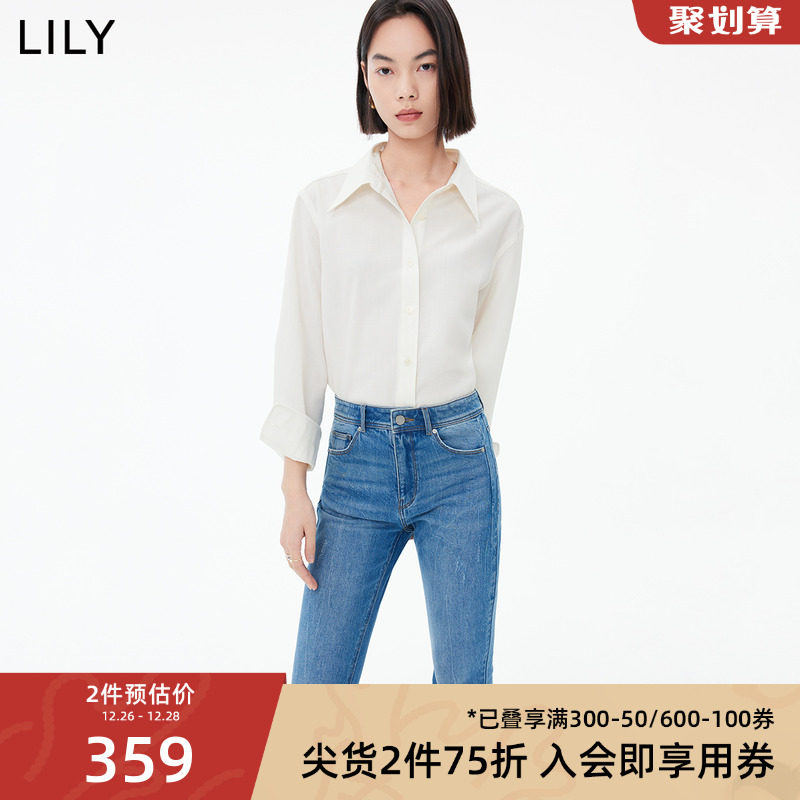 【商场同款】LILY2023秋新款女装含桑蚕丝通勤款宽松垂坠感白衬衫