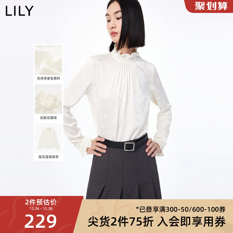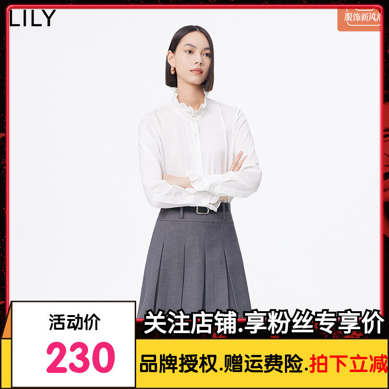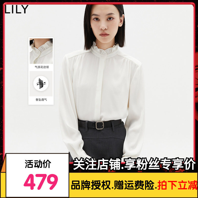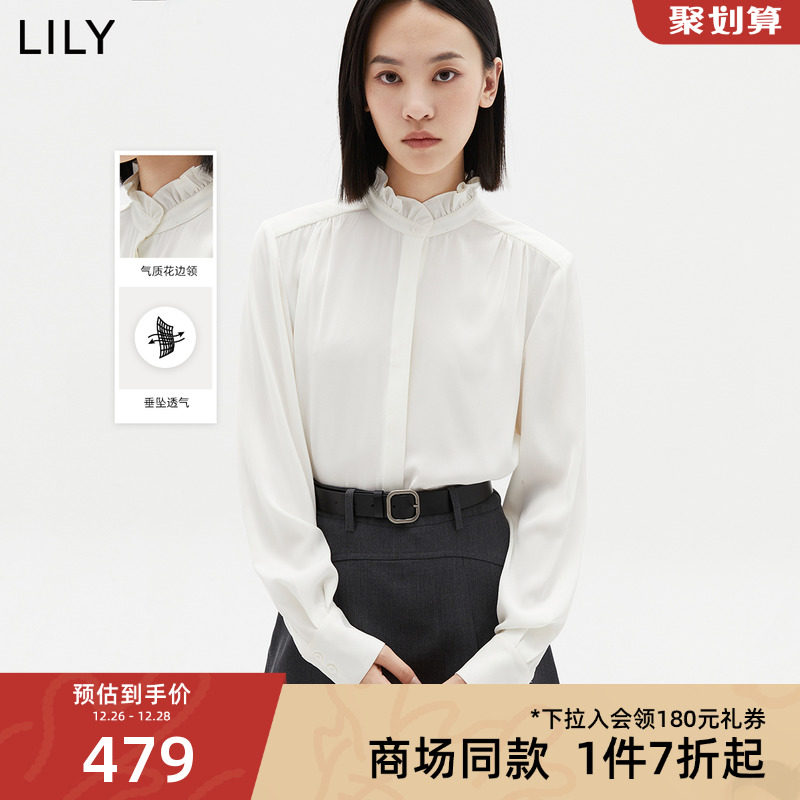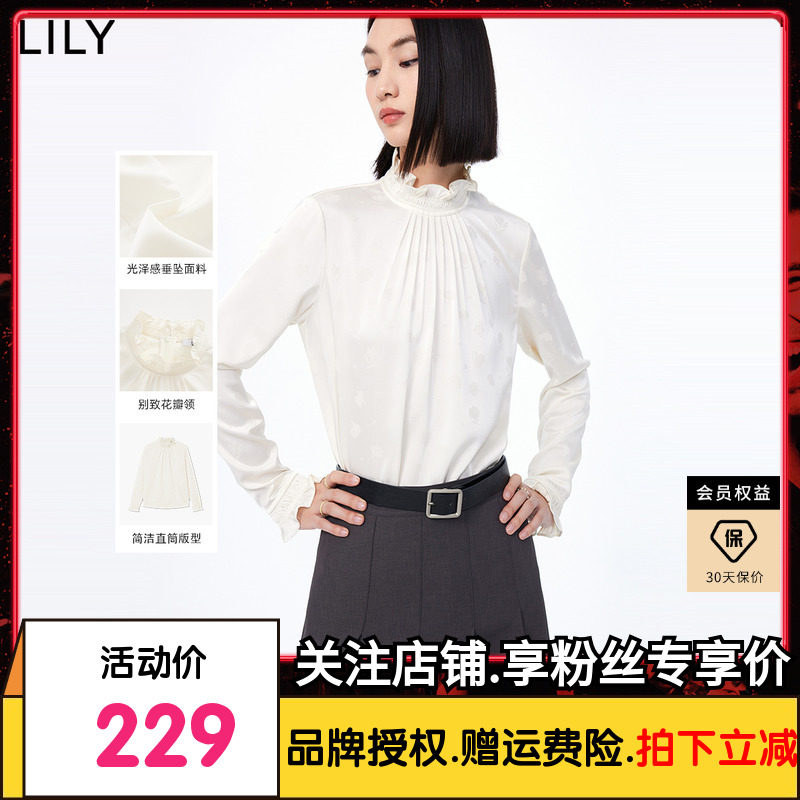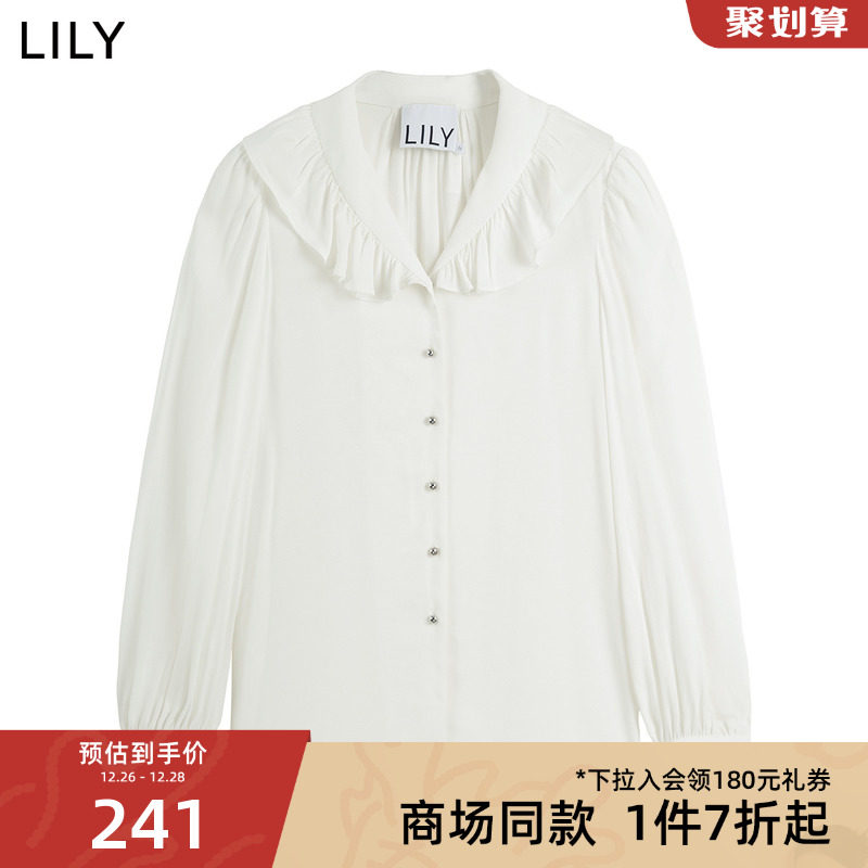 【商场同款】LILY2023冬新款女装浪漫花边领通勤垂坠感长袖白衬衫