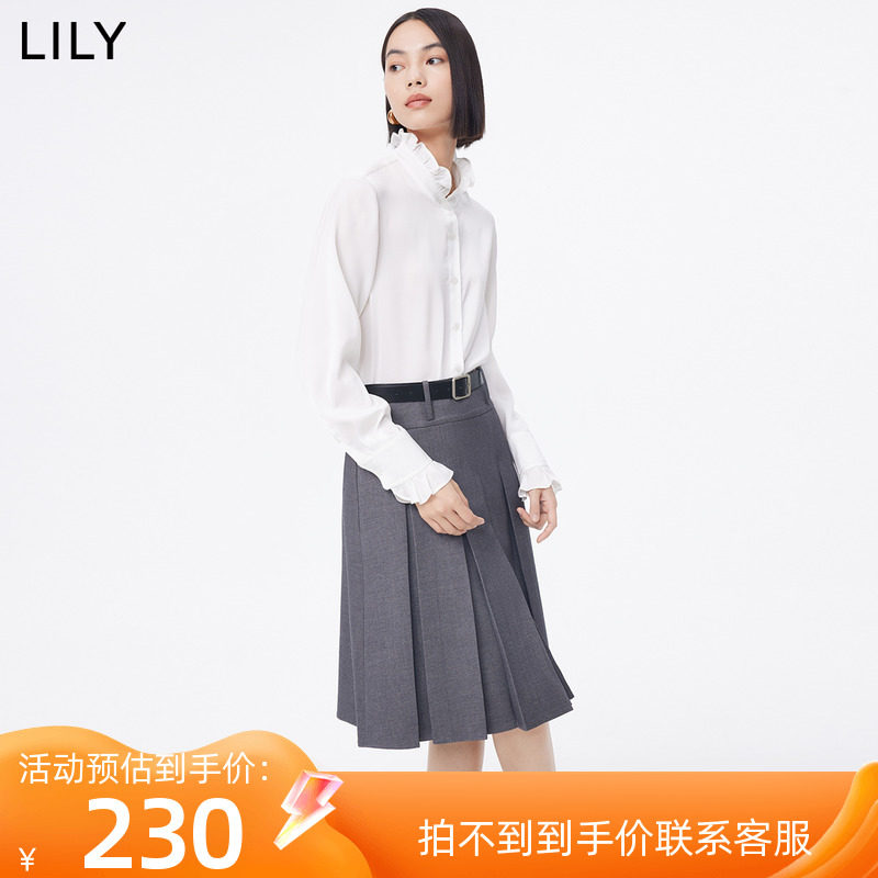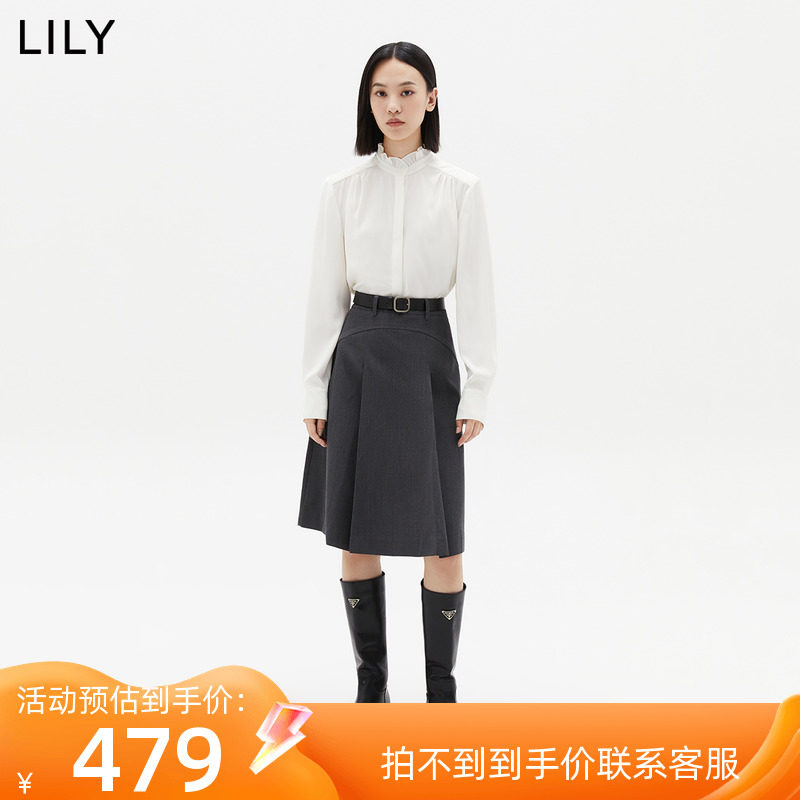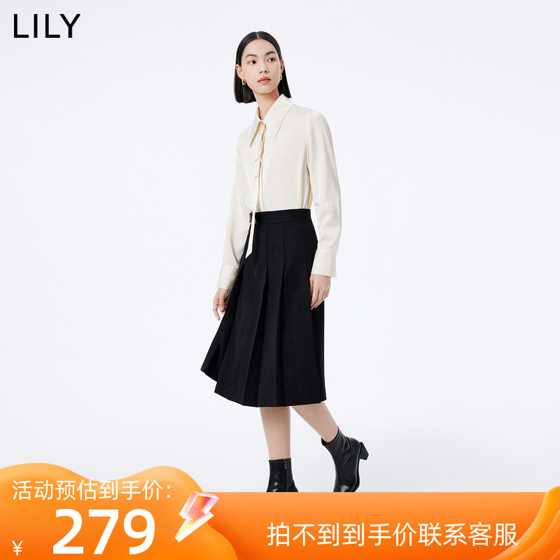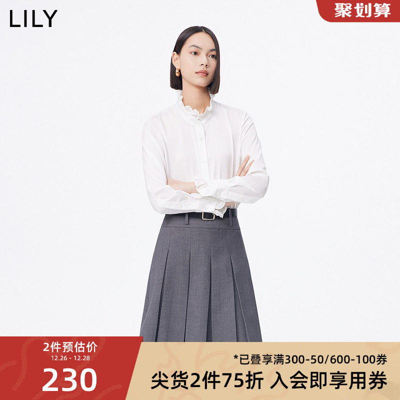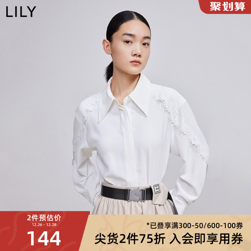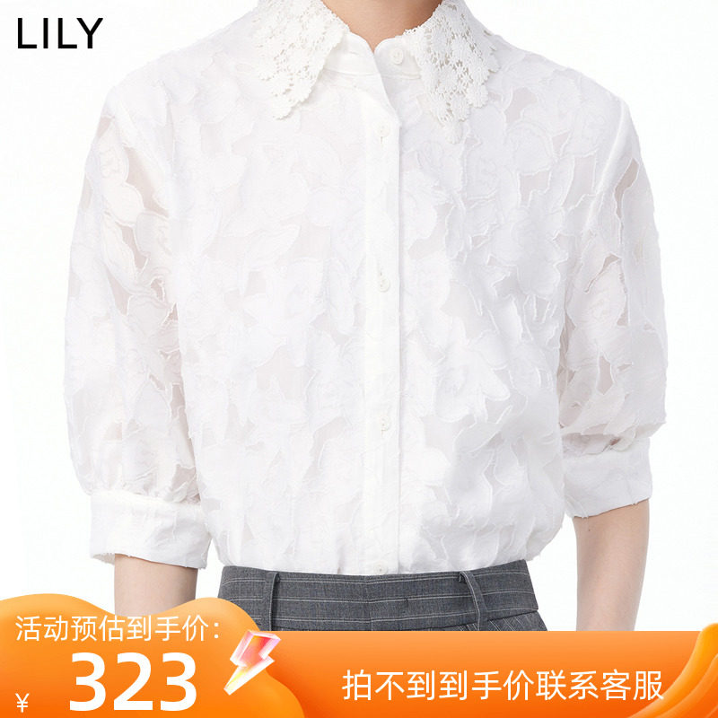 【商场同款】LILY2023冬新款女装浪漫花边领通勤垂坠感长袖白衬衫