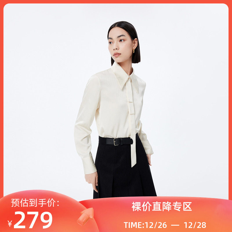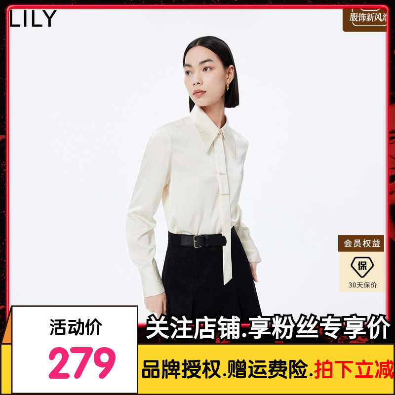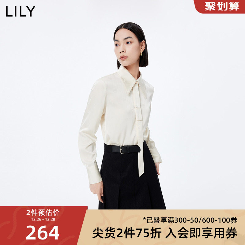 LILY2023冬新款女装优雅气质时尚领带通勤款宽松垂坠感白衬衫上衣