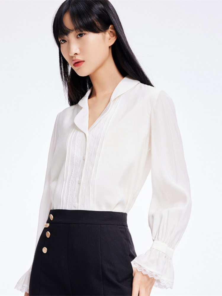 LILY2023冬新款女装浪漫花边优雅气质气质通勤时尚垂坠感白衬衫女