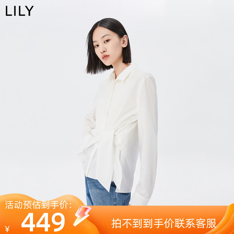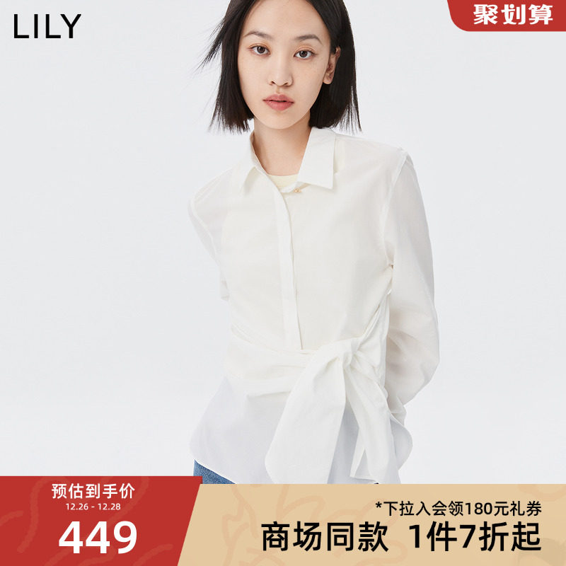 【商场同款】LILY2023秋新款女装垂坠天丝别致扭结显瘦优雅白衬衫