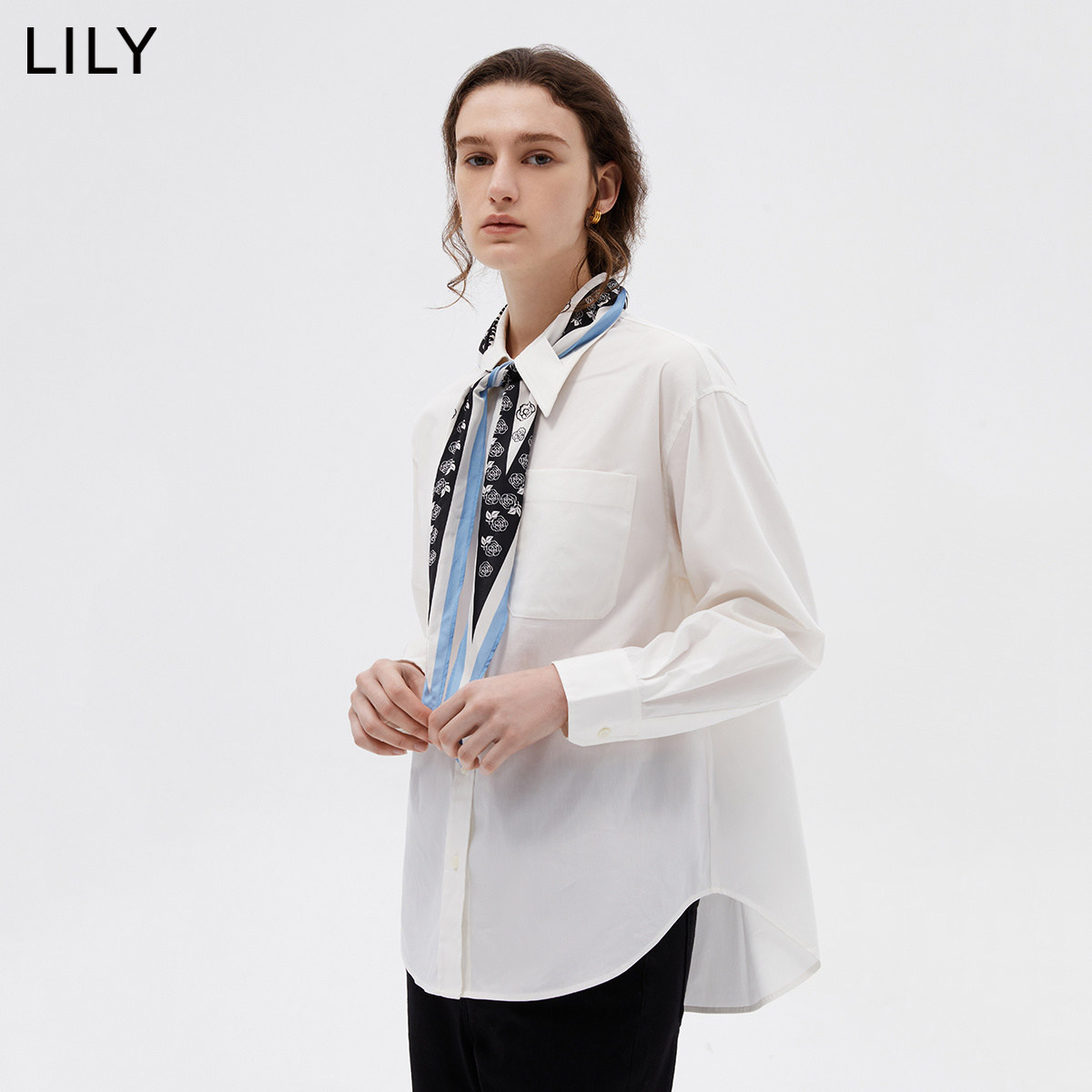 【商场同款】LILY2023春新款女装优雅别致丝巾气质通勤宽松白衬衫