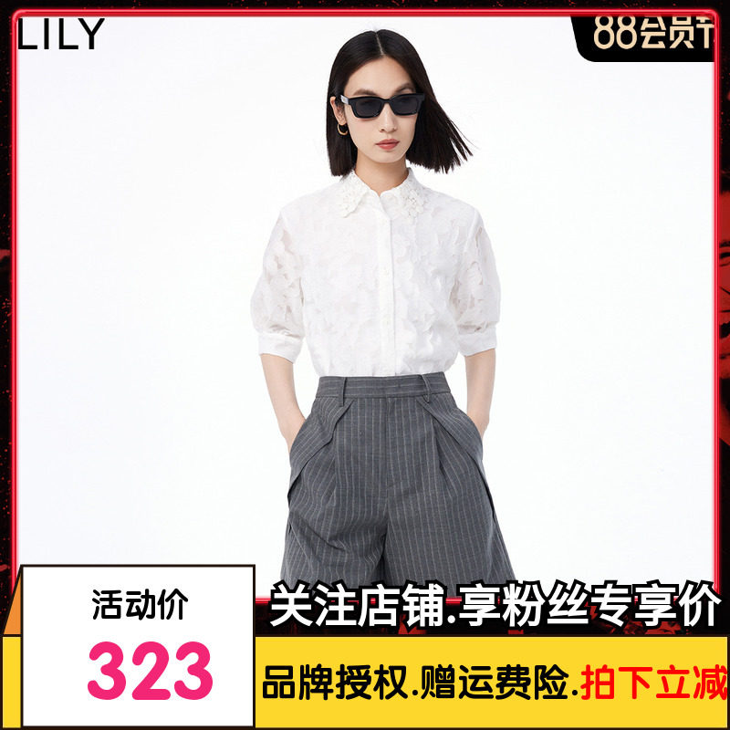 LILY2024春新款女装优雅气质蕾丝时尚都市通勤都市设计感白衬衫女