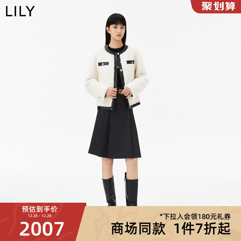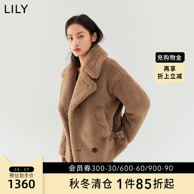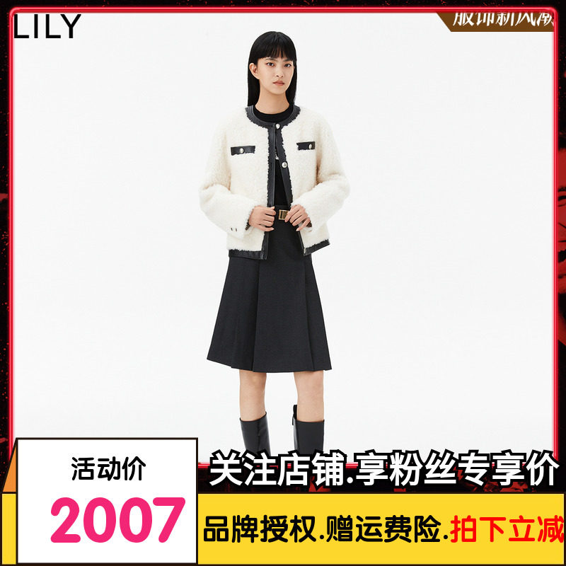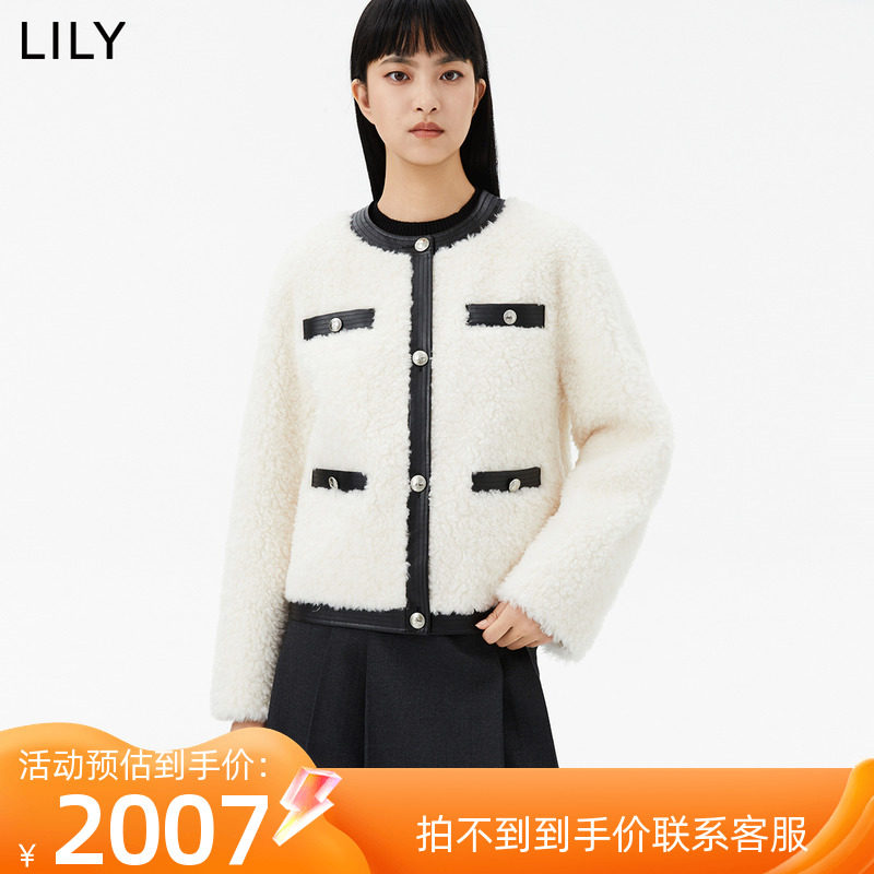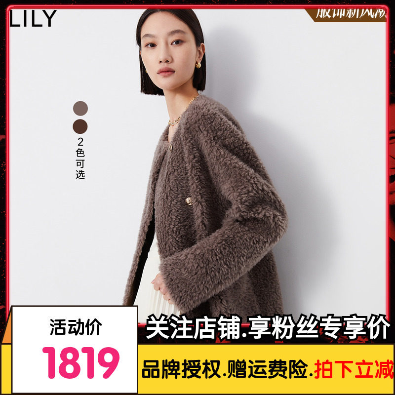 【商场同款】LILY2023冬新款女装全绵羊毛复古小香风仿皮草外套女