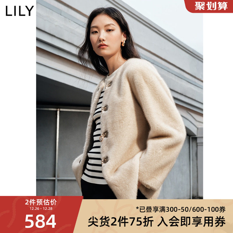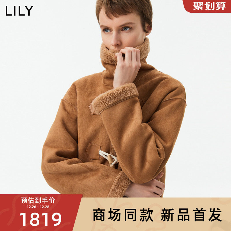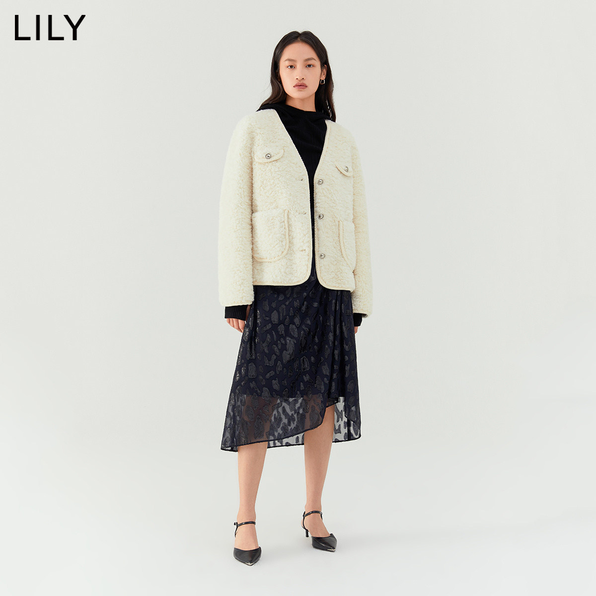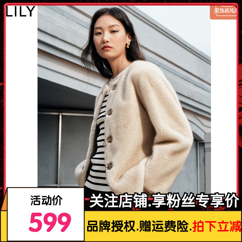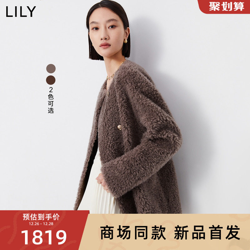 【商场同款】LILY2023冬新款女装全绵羊毛复古小香风仿皮草外套女