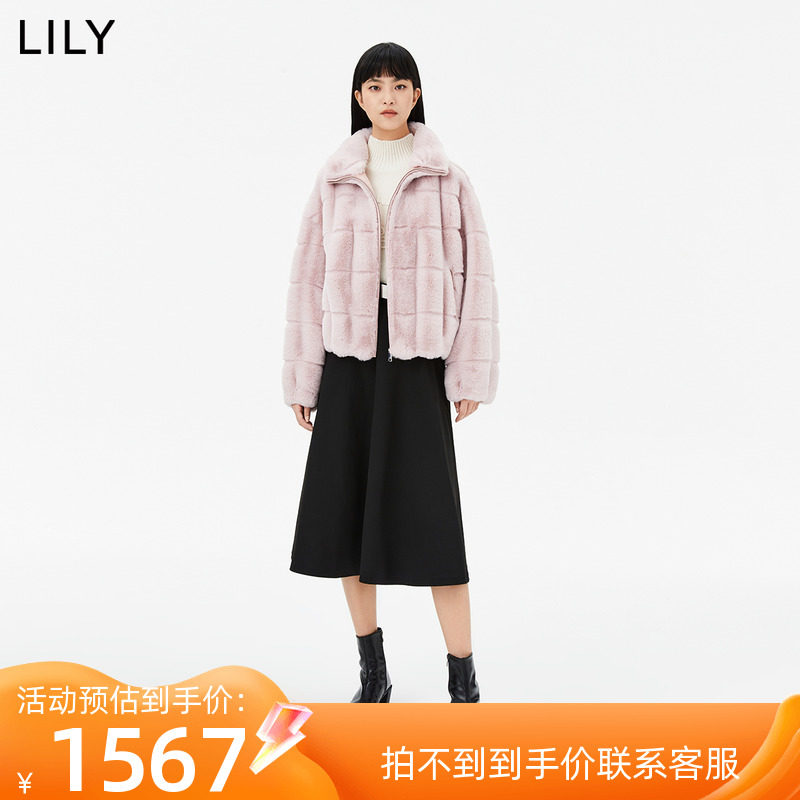 【商场同款】LILY2022冬新款女装气质复古优雅小香风环保皮草外套