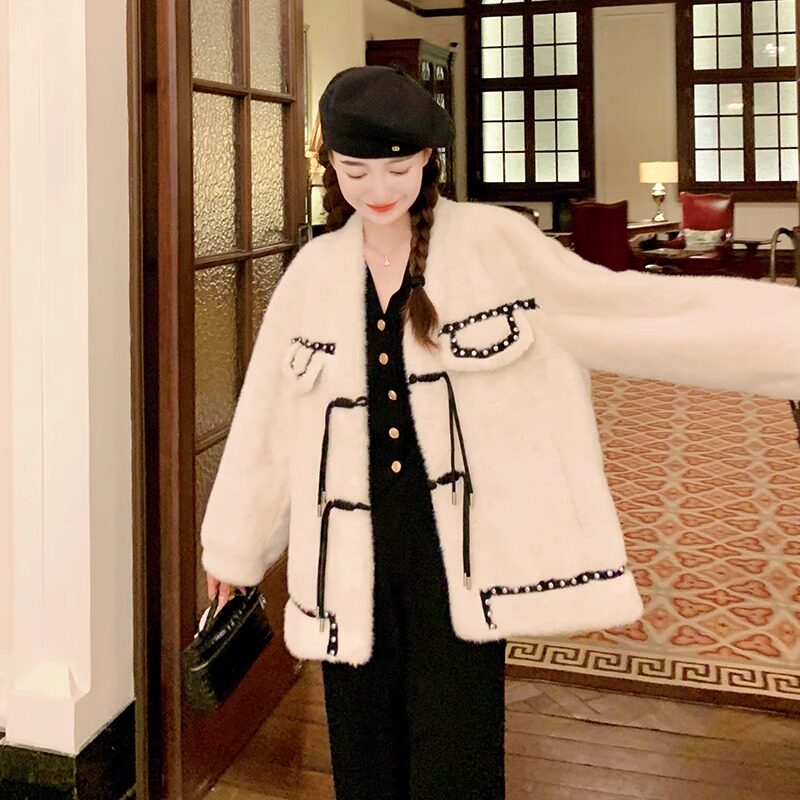 LILY MOST 小香风宽松保暖毛绒大衣2023新款气质皮毛一体皮草外套