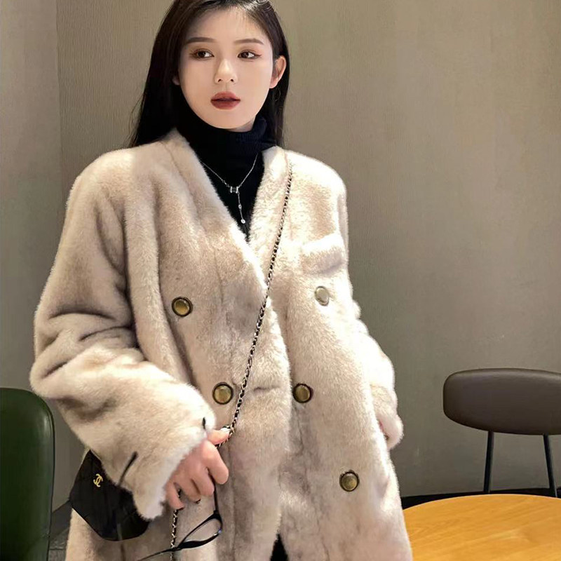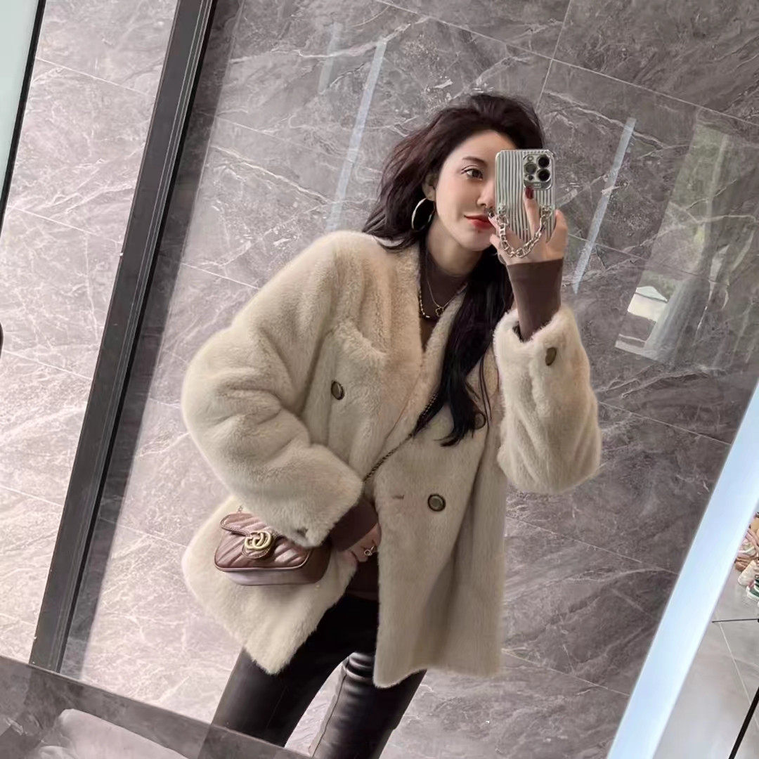 LILY MOST水貂绒羊羔毛外套女冬季新款宽松时尚皮草保暖毛绒大衣