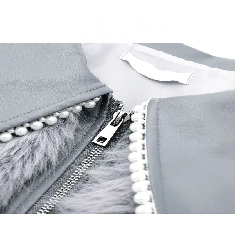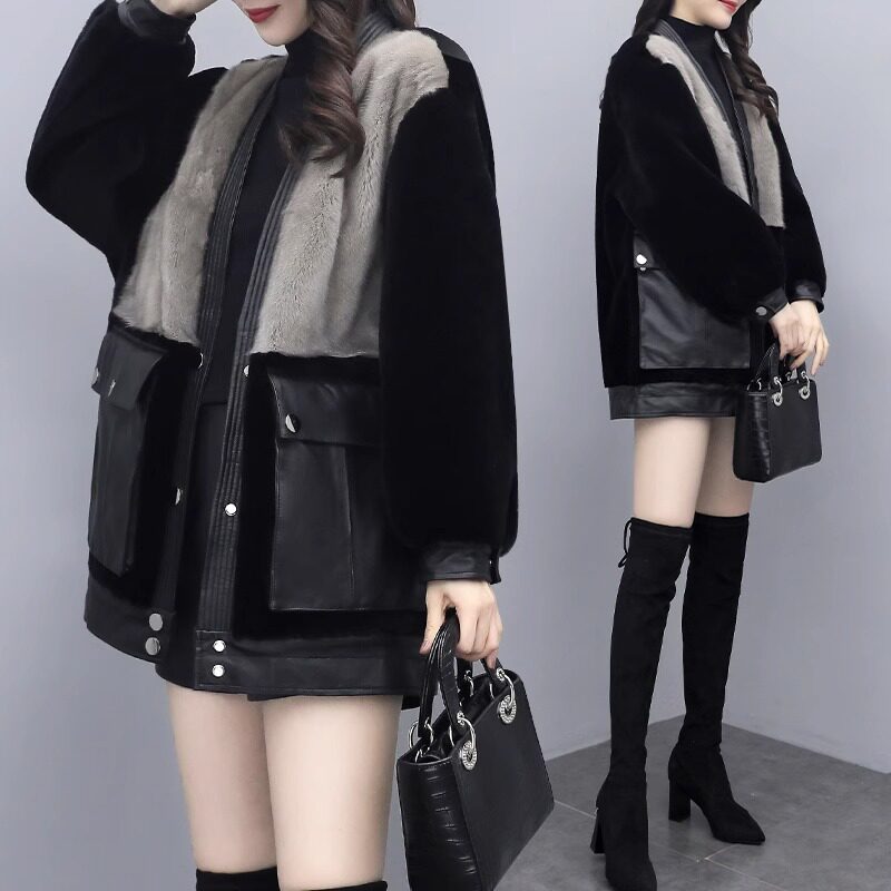 LILY MOST小香风加厚拼接皮草大衣2023秋冬新款羊羔毛机车服外套