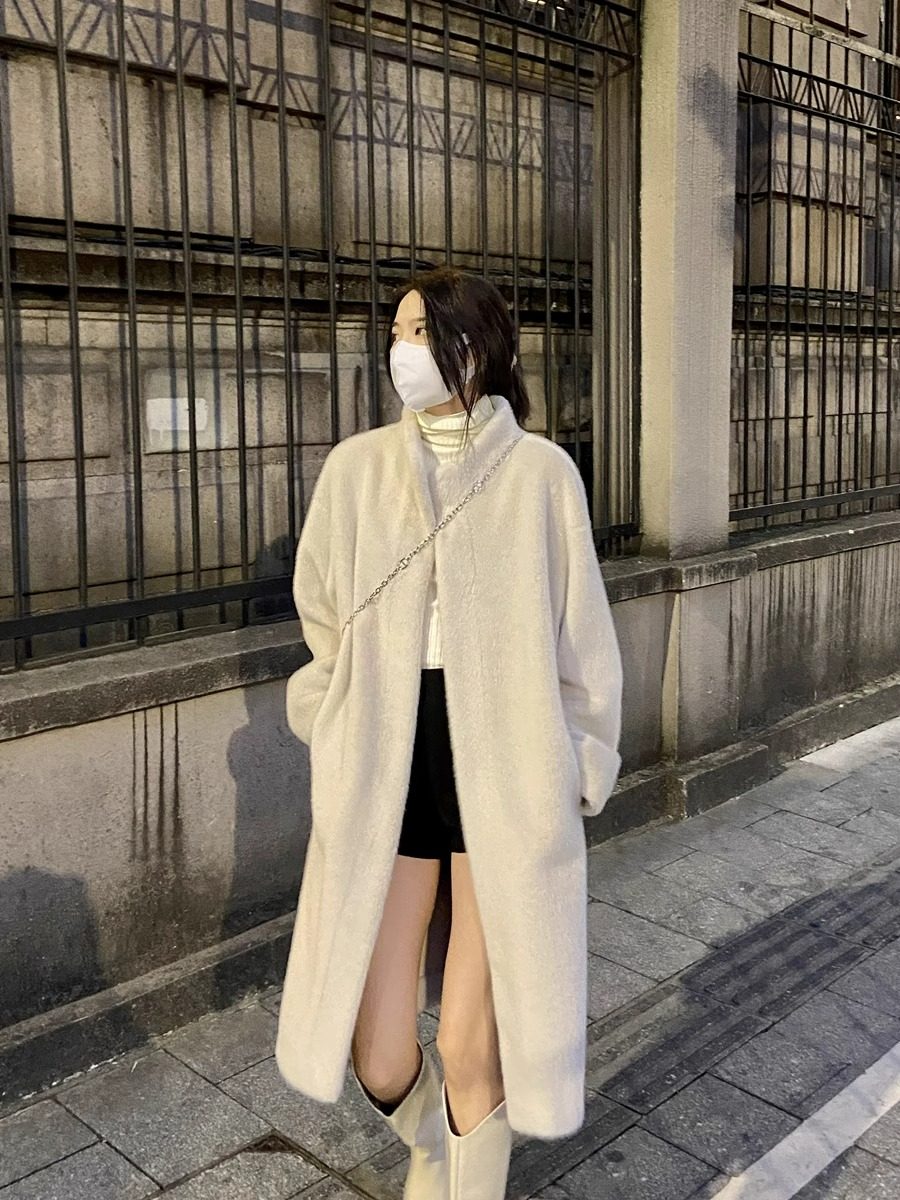 LILY MOST冬季长版兔绒过膝高级设计感环保皮草立领外套大衣女