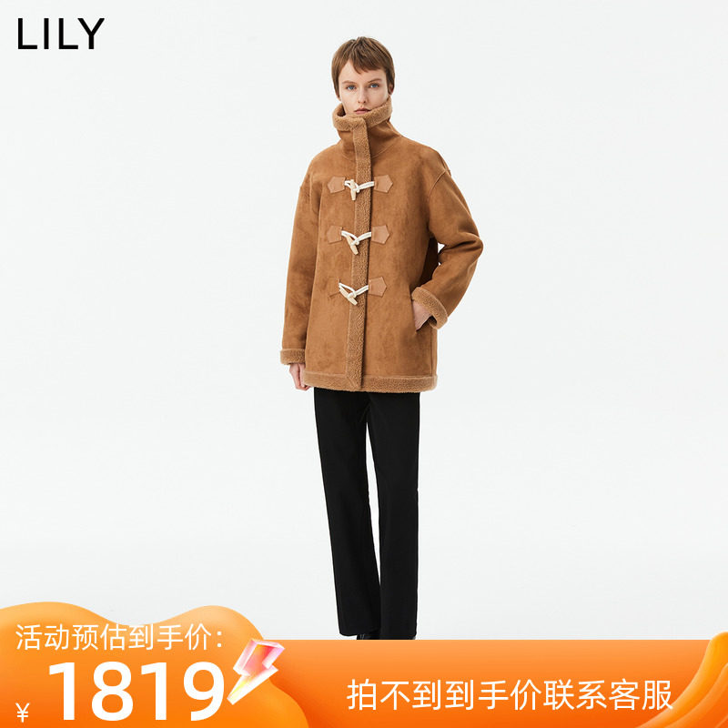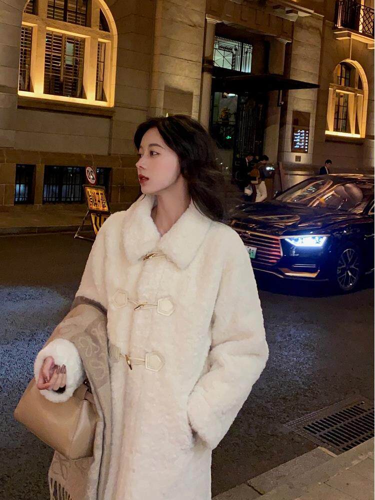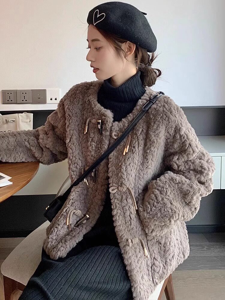 LILY MOST环保皮草外套女冬季新款复古牛角扣羊羔毛皮毛一体上衣
