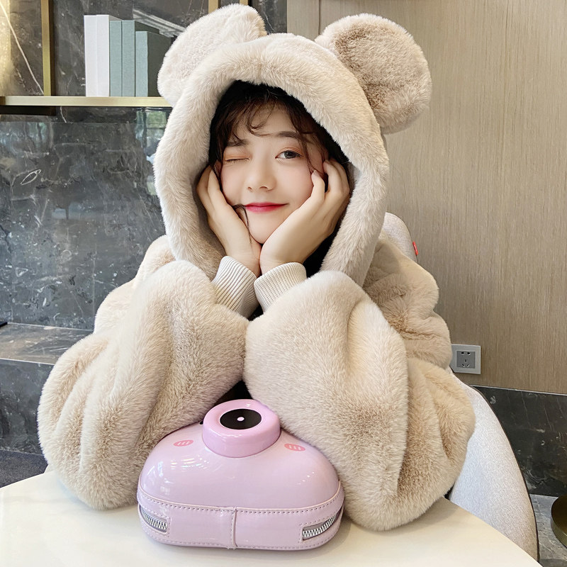 LILY MOST连帽羊羔毛毛绒皮草外套女冬季减龄可爱小熊獭兔毛大衣